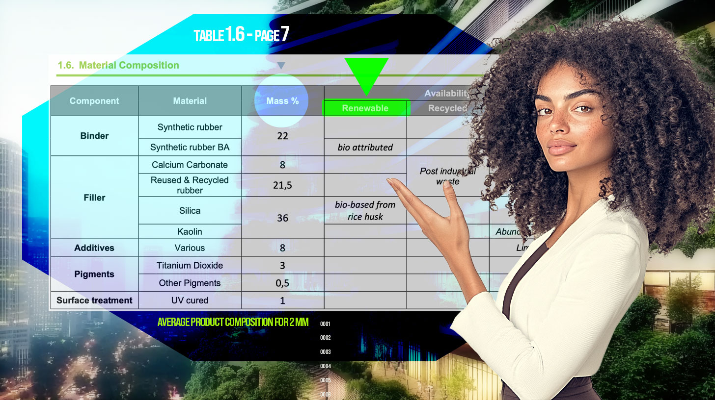 As with recycled content, it can be found in the section dedicated to material composition (Table 1.6).