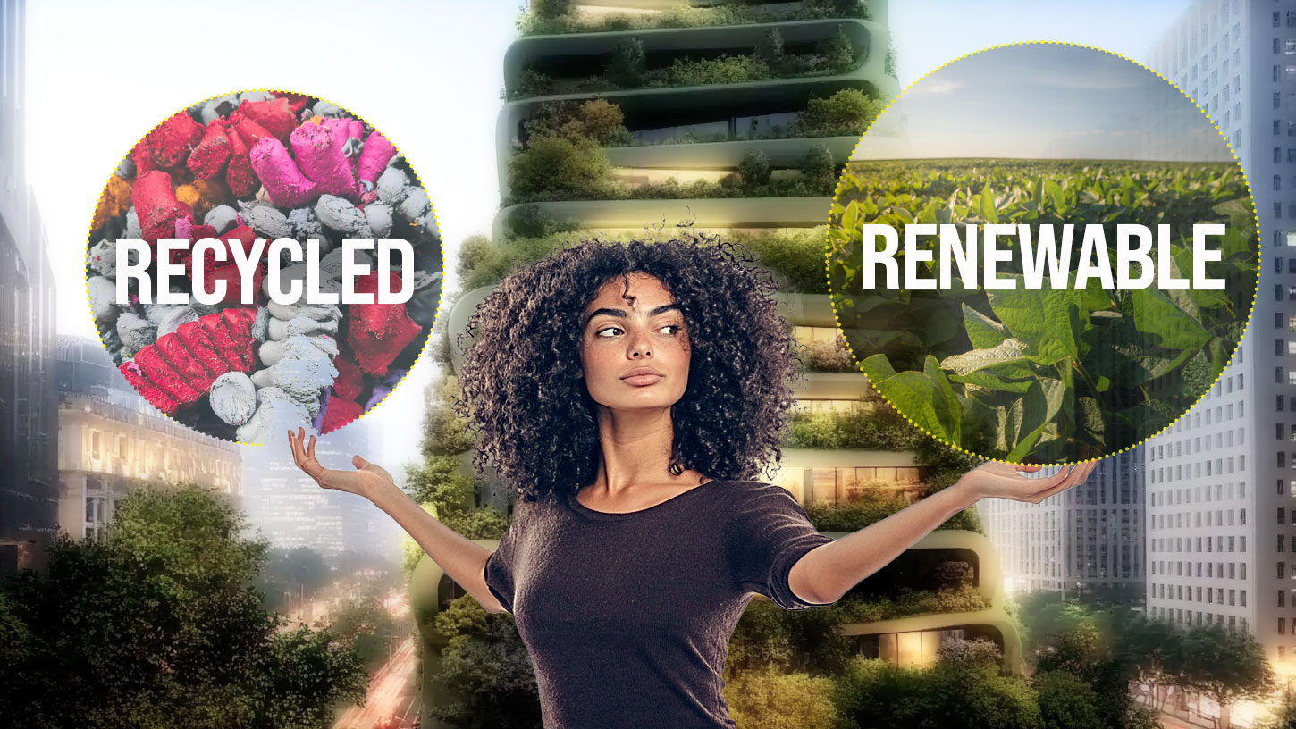 Because both Bio-based and Bio-attributed materials significantly reduce environmental impact. Unlike fossil-based raw materials, which take millions of years to form and are permanently extracted from the environment, renewable materials—true to their name—regenerate naturally and absorb carbon dioxide (CO2) from the atmosphere during their lifecycle.