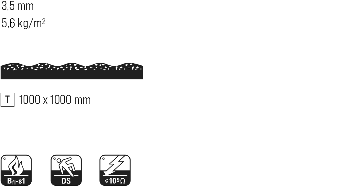 • Propiedades ignífugas: clasificación Bfl-s1 según EN 13501-1.