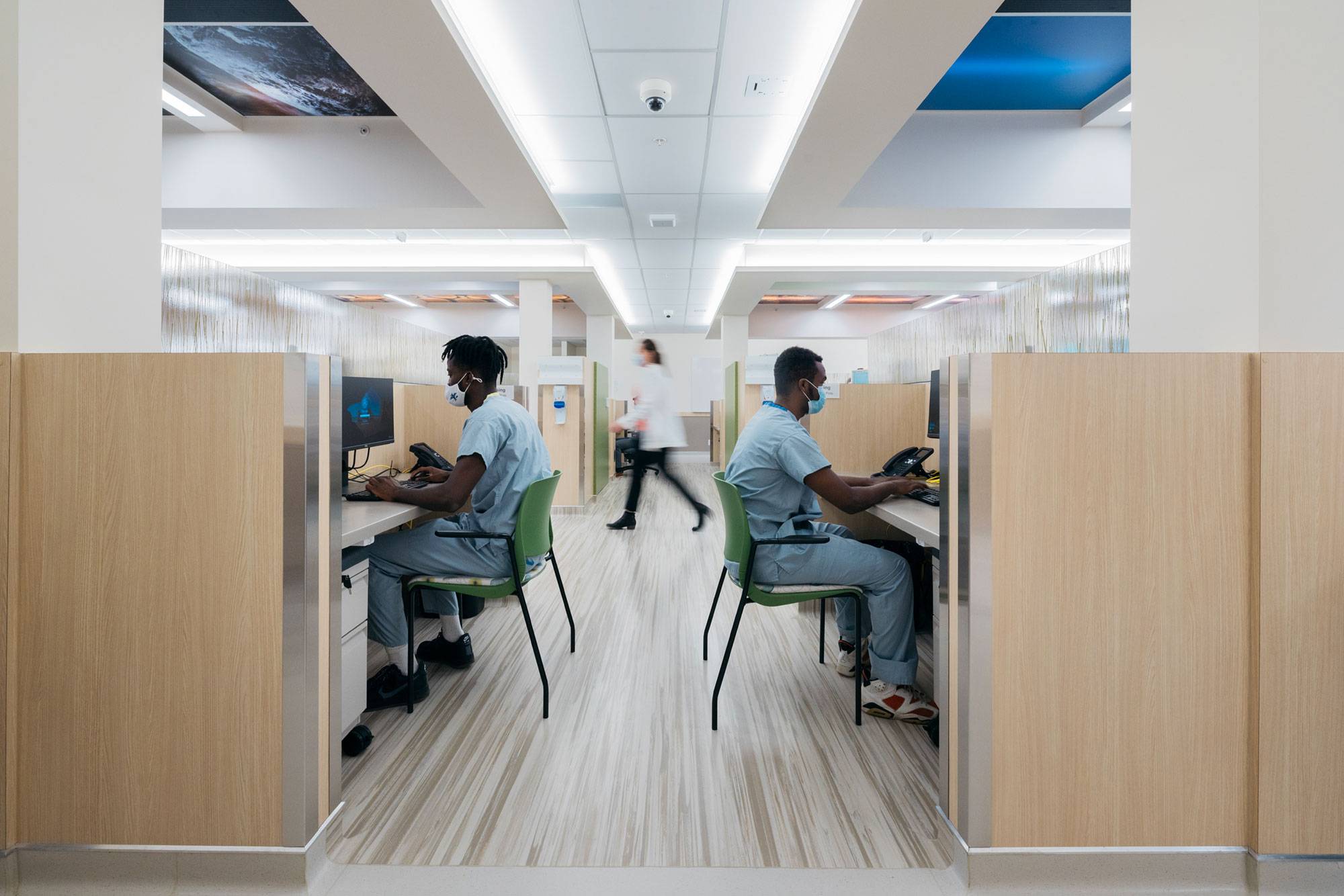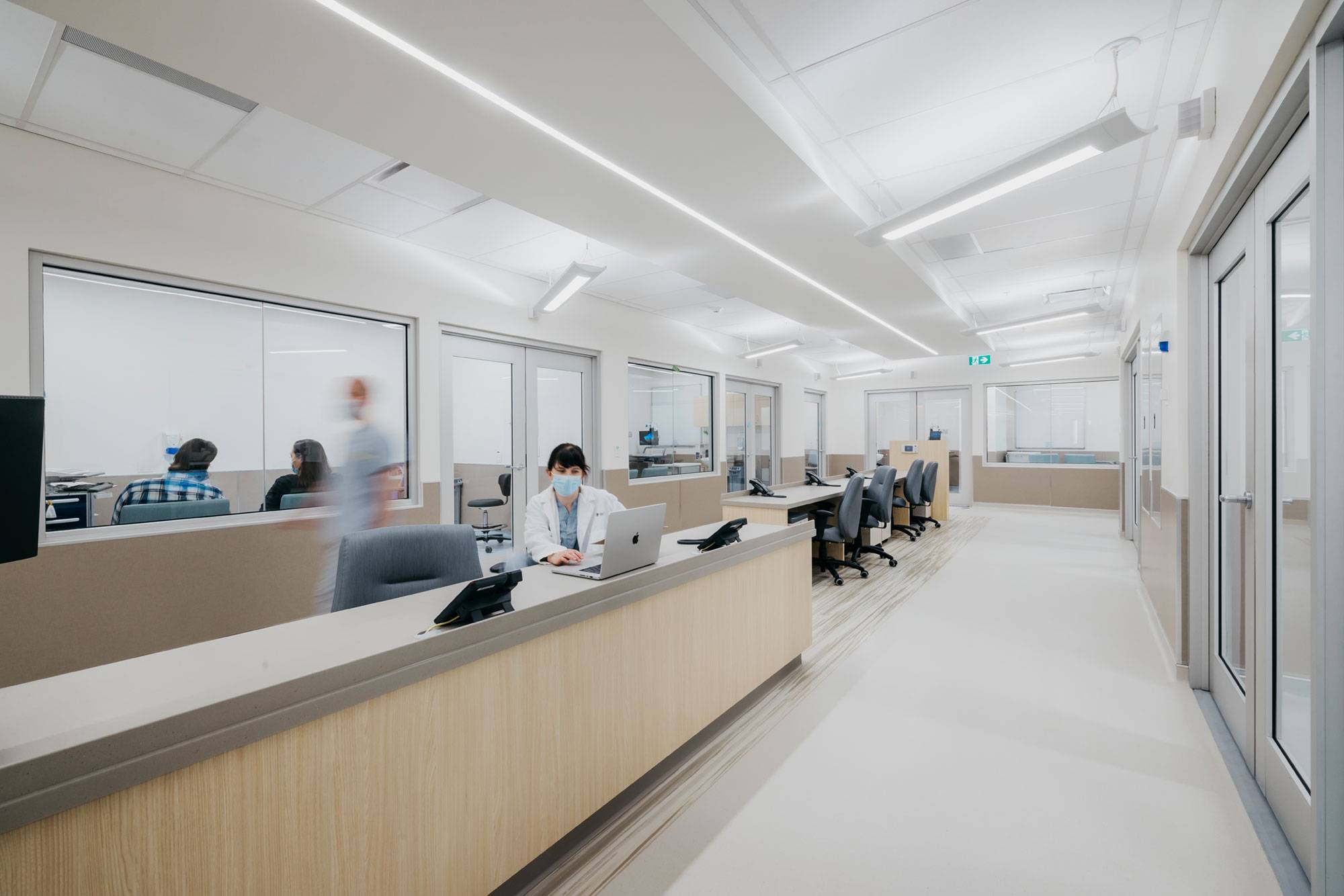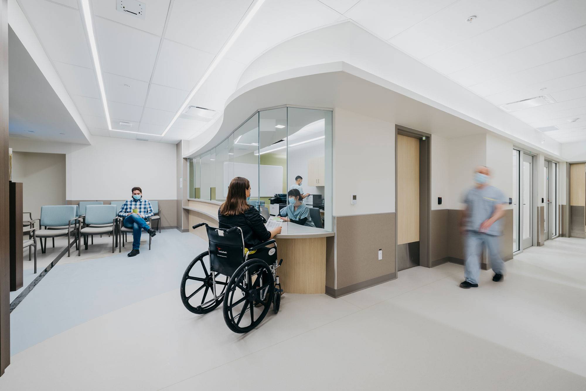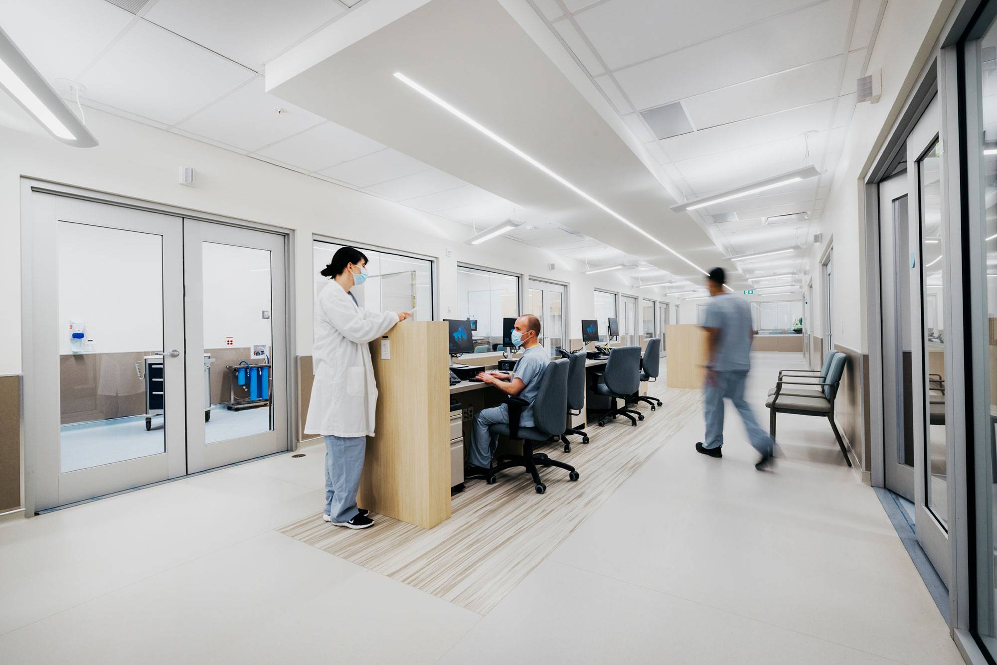 Ogni centimetro quadrato della nuova clinica è stato progettato e realizzato con cura per creare uno spazio che non sia solo funzionale, ma che offra un senso di casa ai pazienti. Data la natura del trattamento dialitico, con pazienti che tornano più volte alla settimana per sessioni che durano ore e ore, è fondamentale che la clinica offra un ambiente accogliente e piacevole in cui tornare più volte. L’interno della clinica è uno spazio ben progettato e realizzato che consente al personale clinico di fornire un’assistenza eccellente ai pazienti. La strategia di progettazione dello spazio dà priorità al benessere fisico ed emotivo. La struttura comprende immagini tratte da piante locali dell’Alberta, tra cui accattivanti pannelli illuminati a soffitto in acrilico con immagini ad alta risoluzione tratte dall’ambiente naturale, pannelli vetrati con intarsi di erba vera e propria, pareti in cavallino color legno e pavimenti ispirati alla natura, che contribuiscono a creare un’atmosfera calda, tranquilla e accogliente.