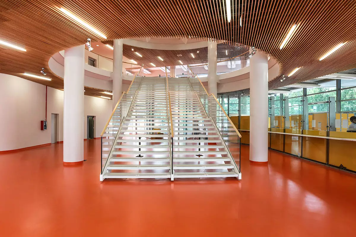 Il nostro contributo al progetto comprende anche le pavimentazioni per le aule, le sale conferenza, gli uffici e le monumentali scale che caratterizzano l’architettura dell’edificio.