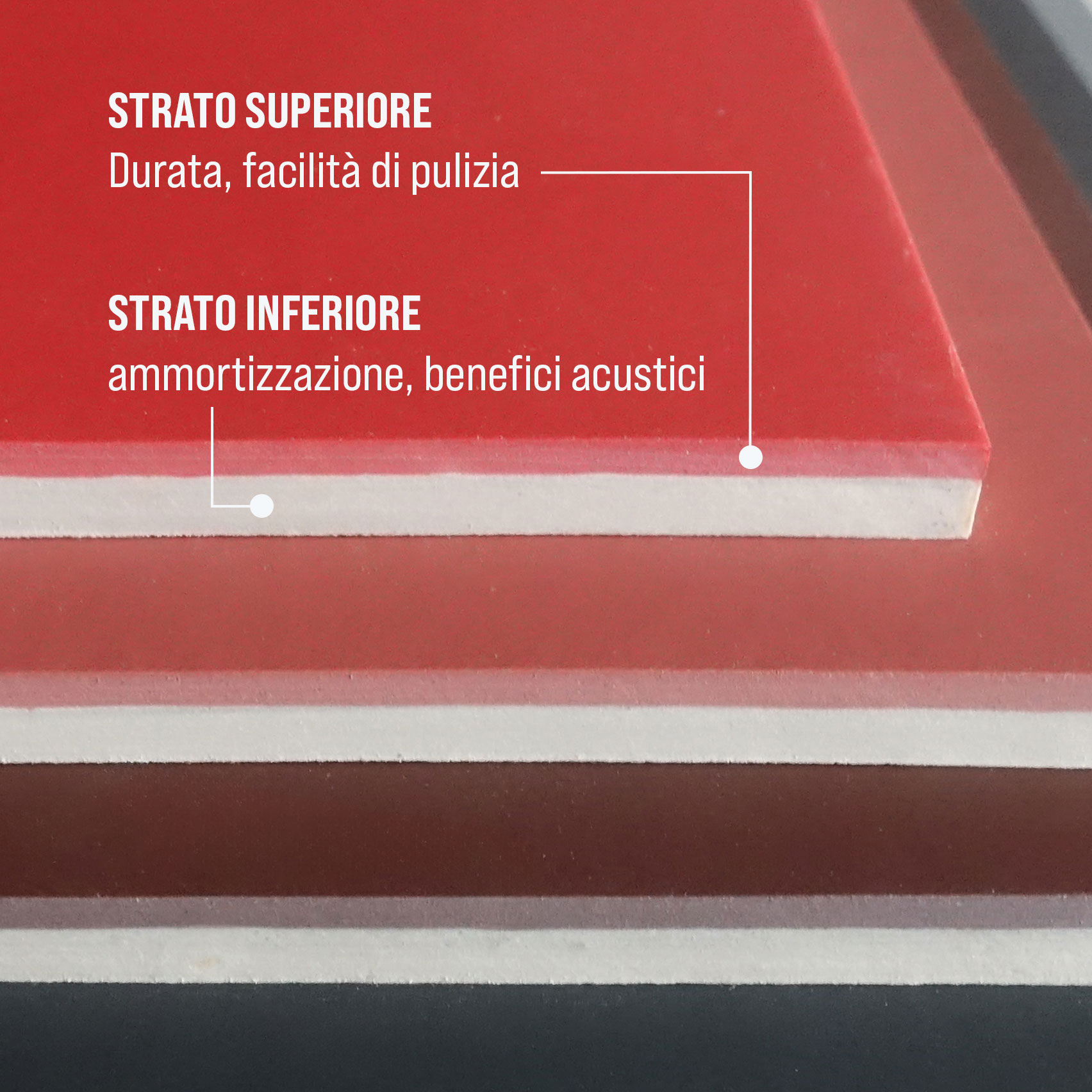 • Lo strato inferiore, che fornisce ammortizzazione e benefici acustici.