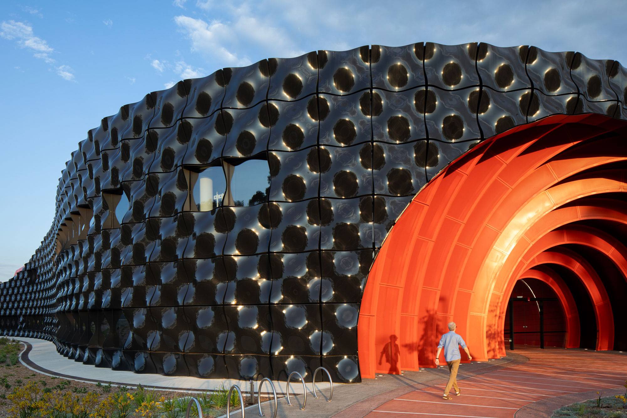 The Blacktown Exercise Sports and Technology Hub (BEST) is a world-class facility at the intersection of sport, culture, health and community. BEST’s striking design is informed by the local multicultural vernacular, including Indian temples, Turkish bathhouses, and Chinese gardens. Its high-tech façade references sporting technology, including 3D printed equipment and apparel, carbon fibre prosthetics and aerodynamic fabrics.
