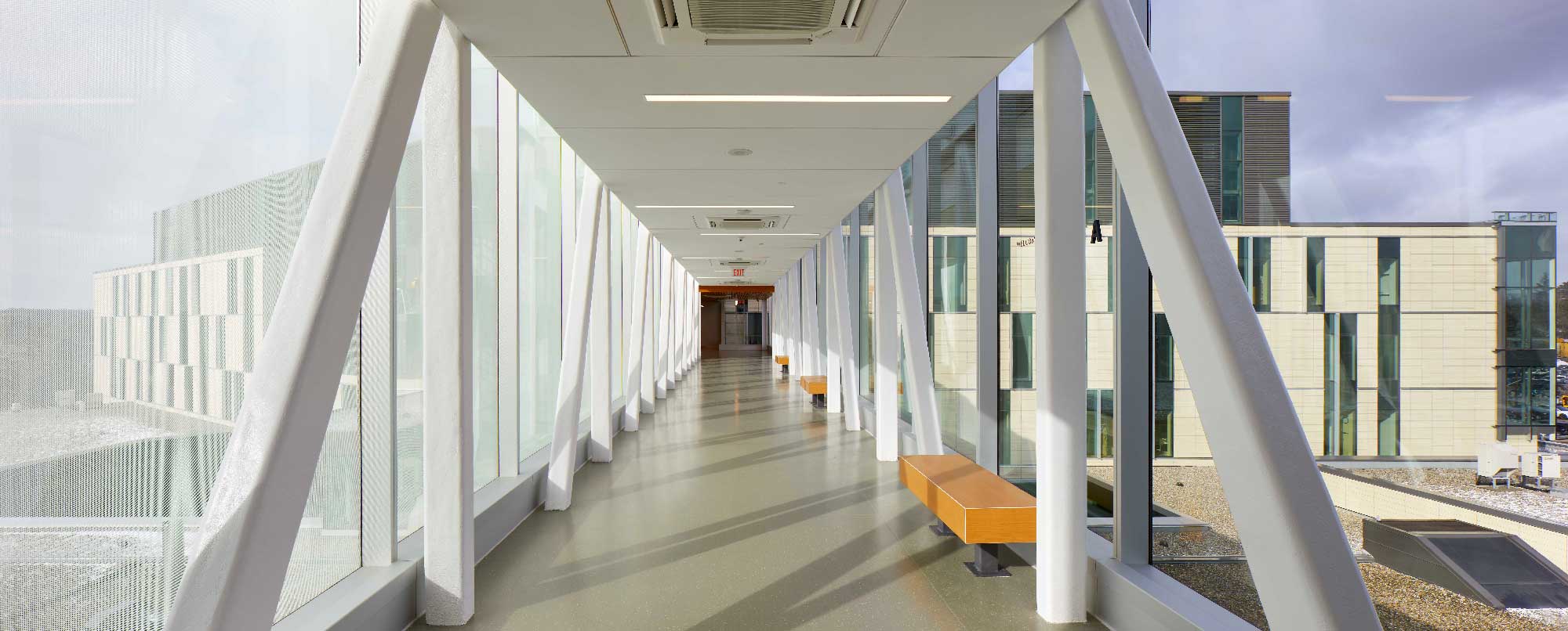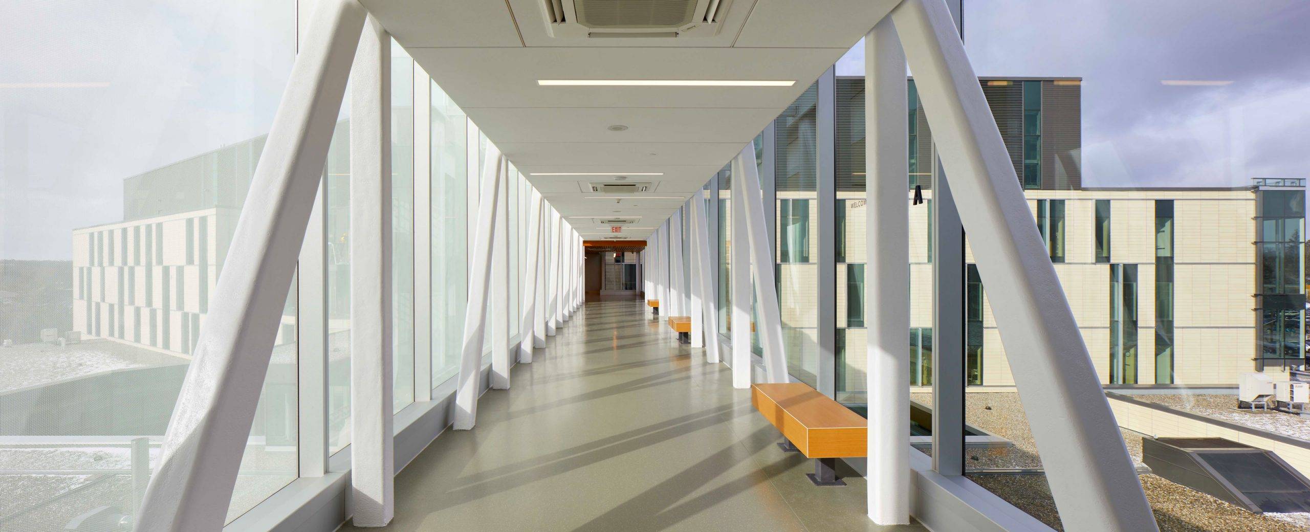 The existing mid-20th century hospital needed expansion and renovation to meet the standards for contemporary healthcare technology. A transparent bridge link connects the new and existing patient towers echoing the tradition of the bridges of Cambridge.