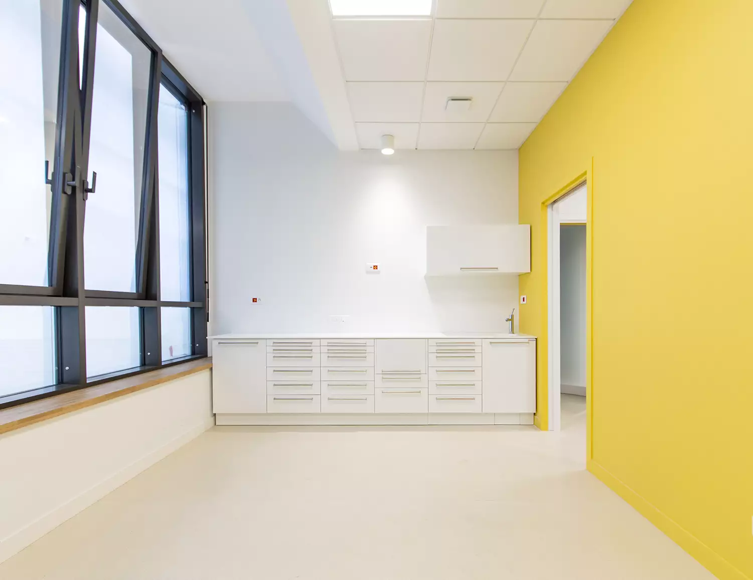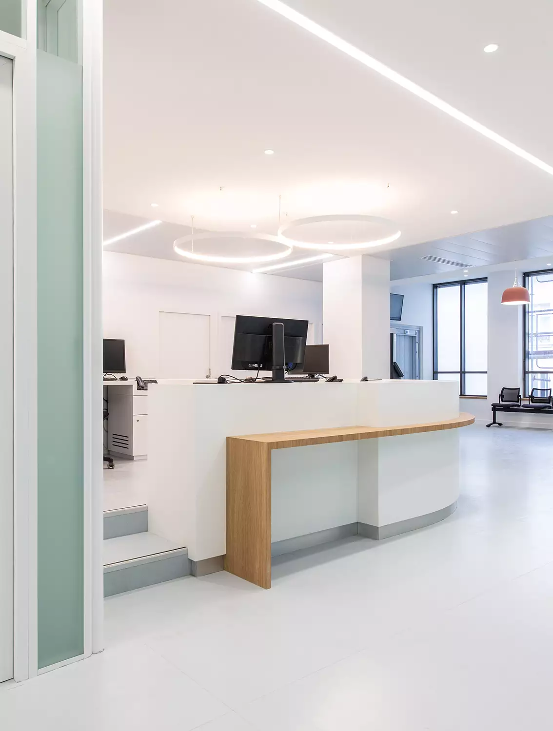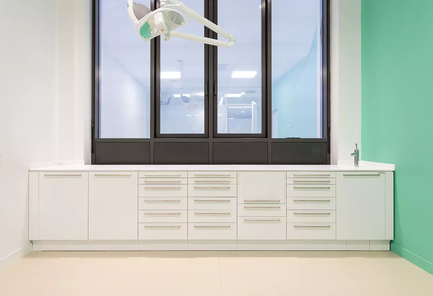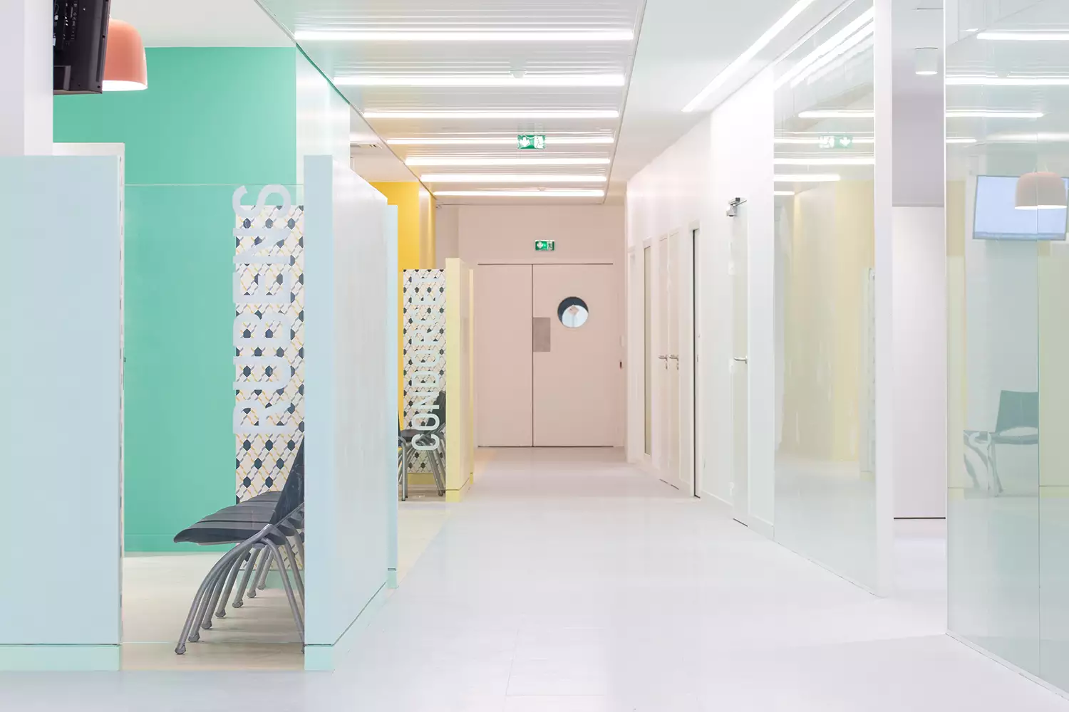 This project in Paris groups 3 dental centres of the CPAM (Caisse Primaire d’Assurance Maladie) in a single entity, totalling 9 dental offices, surgery areas and offices.