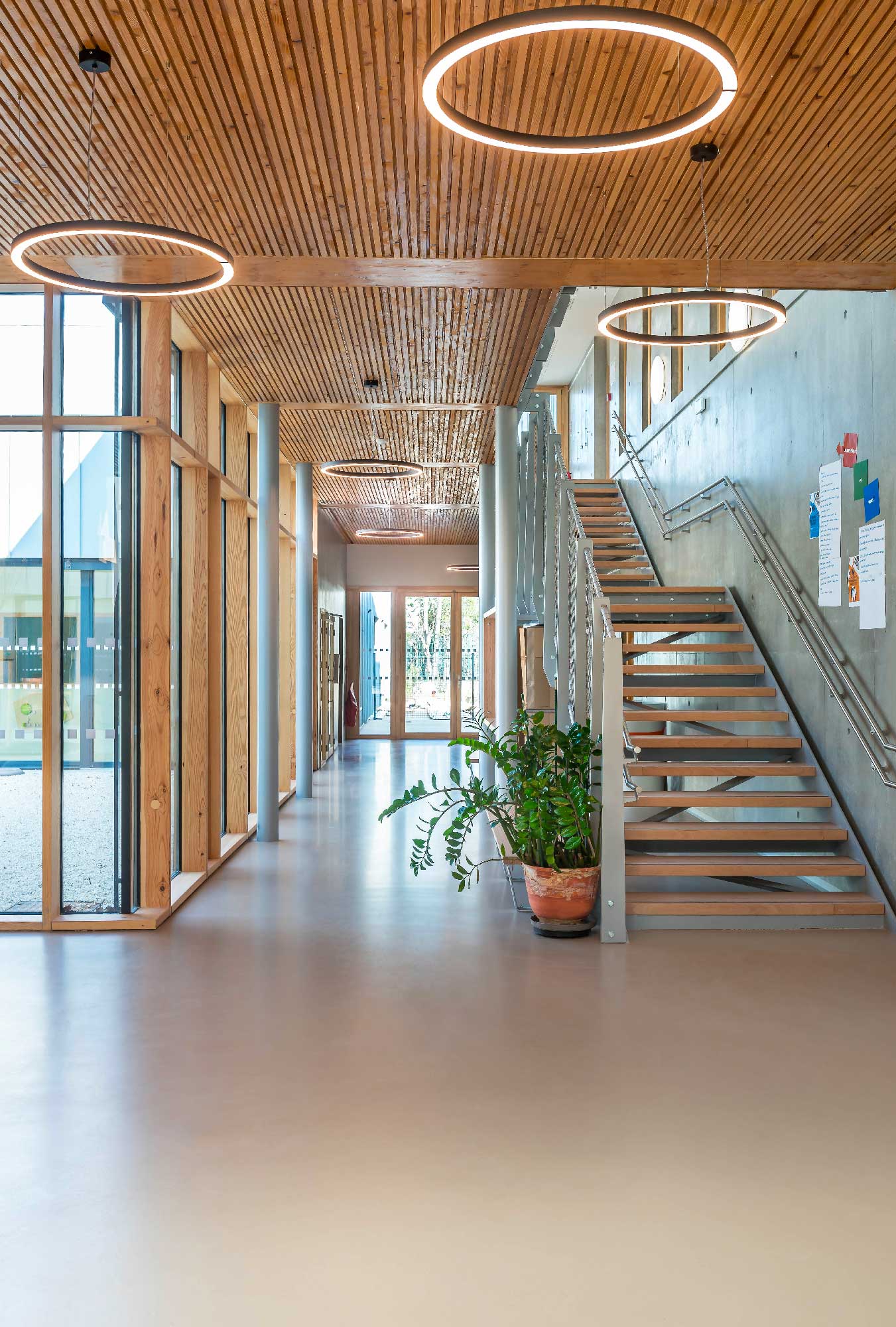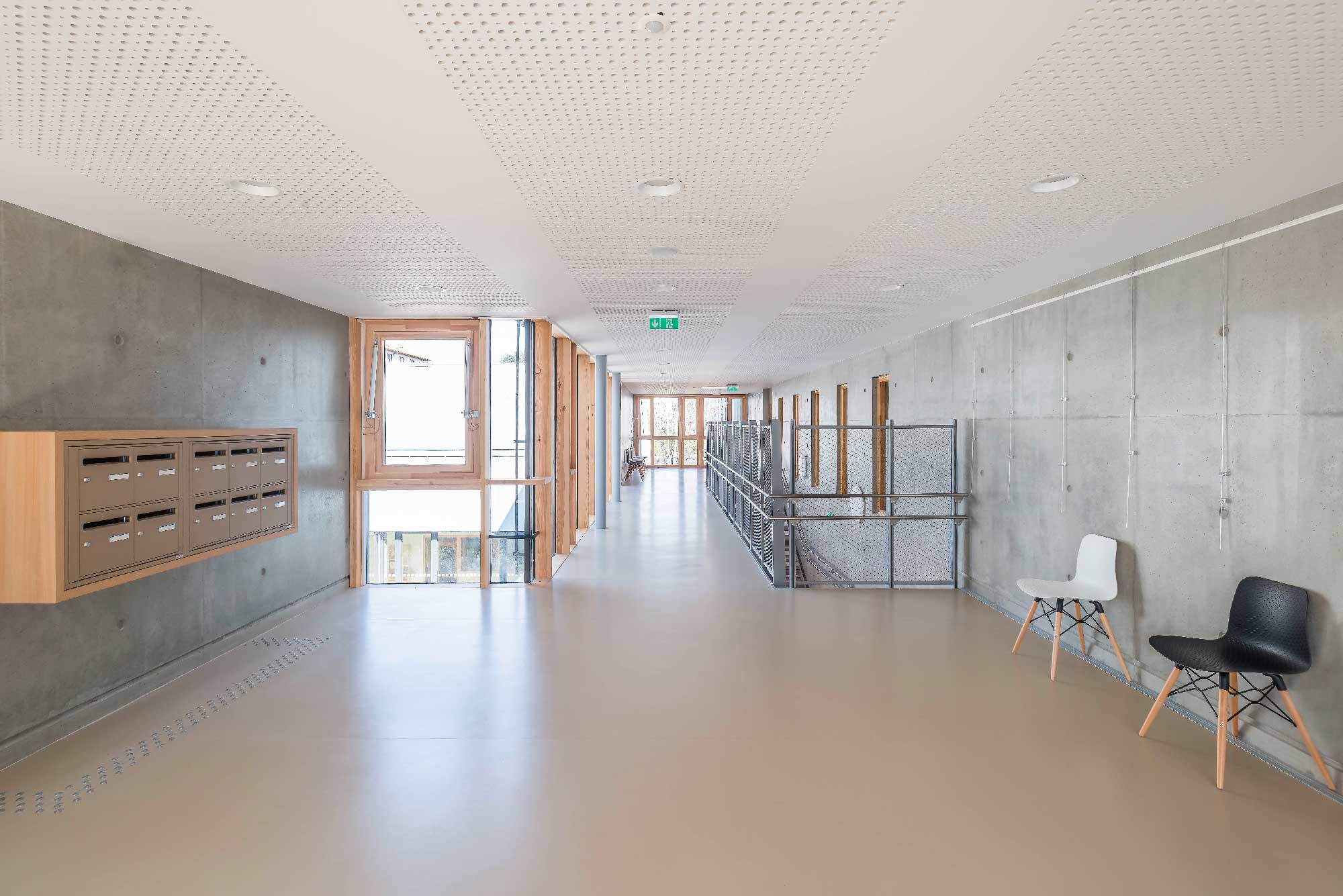 The materiality of the project is based on the choice of long-lasting materials: zinc in the wall and roof cladding, raw concrete in the wall partially on the ground floor, wood / aluminum joinery and, of course, rubber flooring.