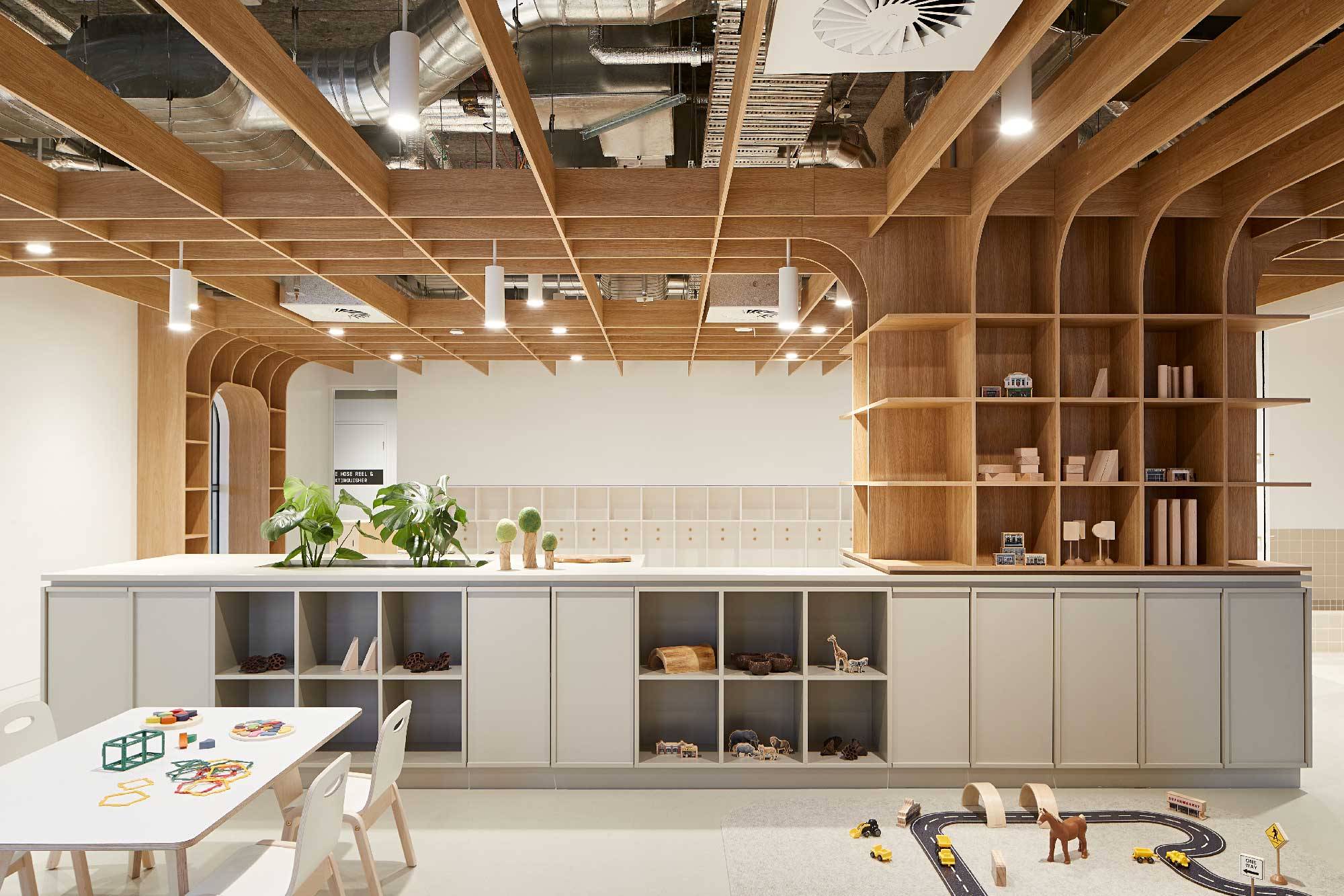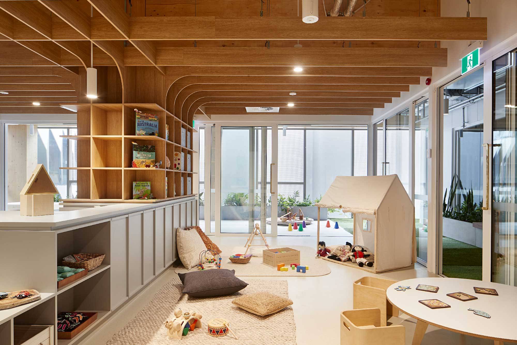 Froebel Australia was selected by the University of Melbourne to develop, build and operate the new Early Learning Centre at the Melbourne Connect innovation precinct which opened in January 2022. Designed by Silvester Fuller, the architectural plan seeks to create a collection of diverse spaces, defined by a timber super-ceiling supporting a broad range of experiences for children, encouraging curiosity, exploration and growth.