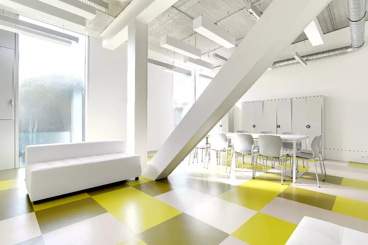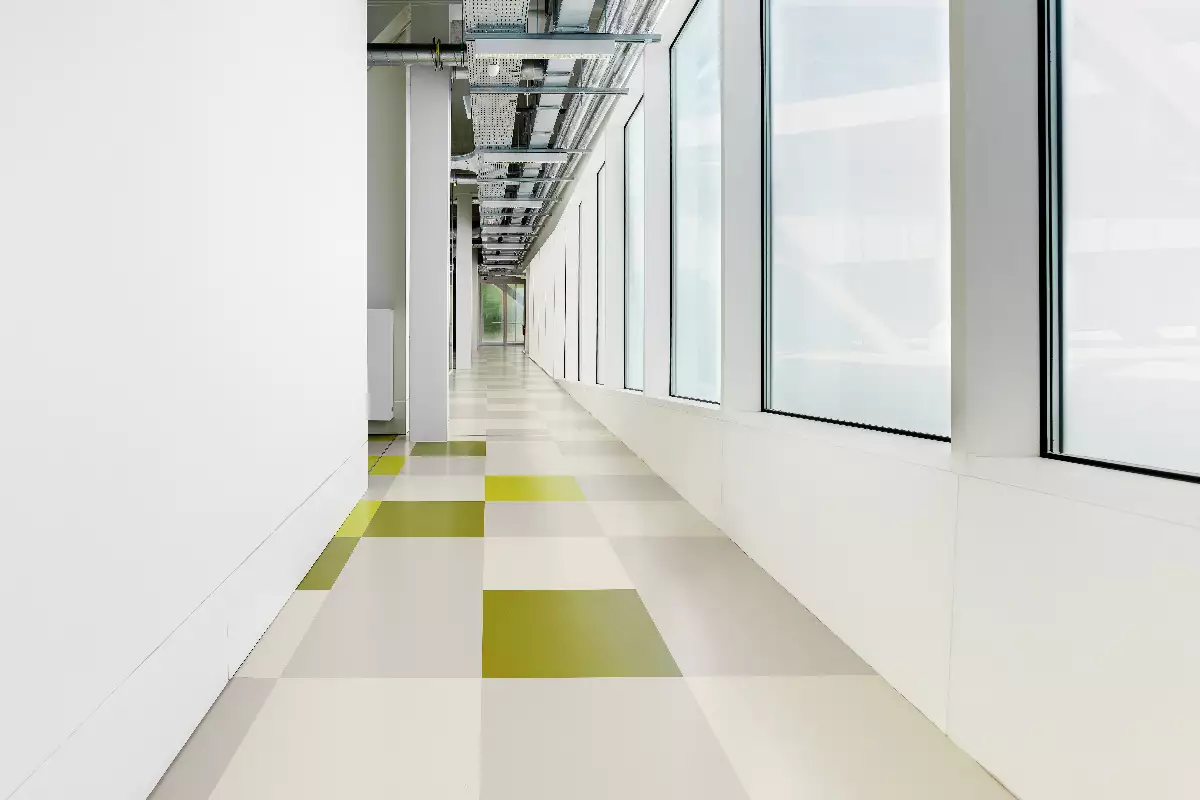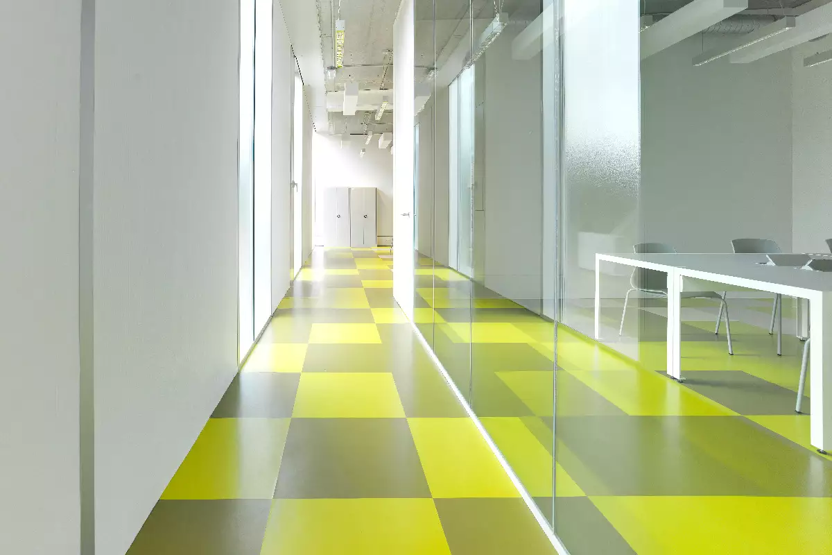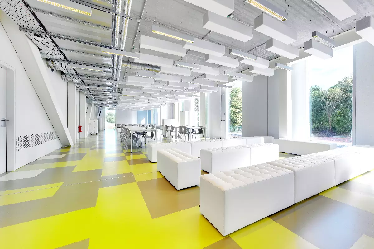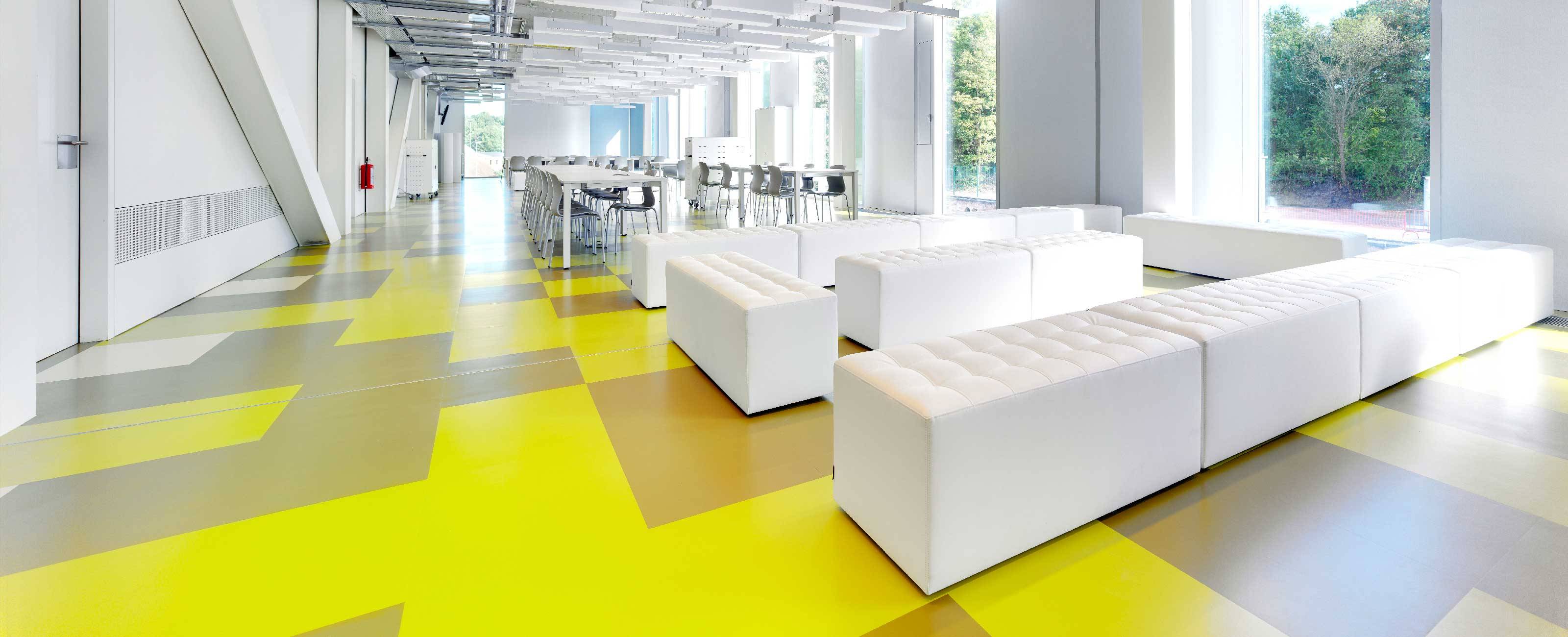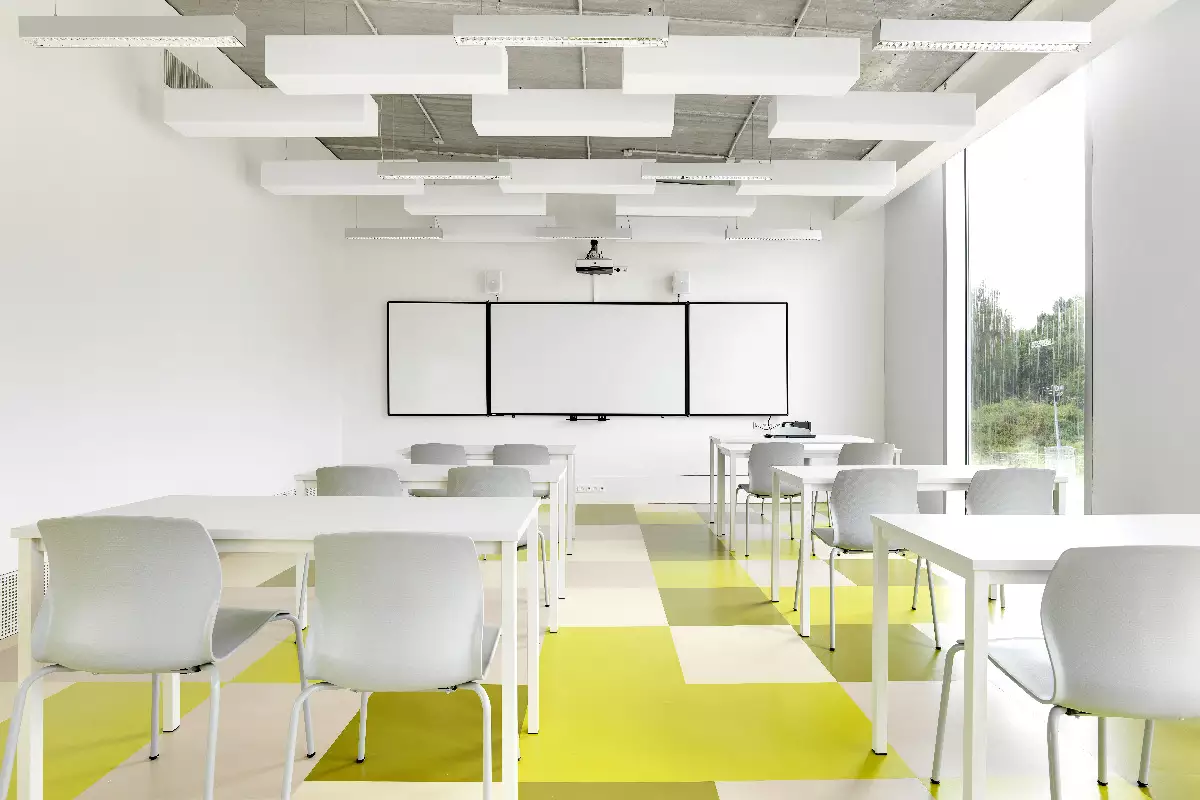 The 5600 sqm passive building, which includes a school section and extensive sports infrastructure, accommodates around 200 students. For the interiors, the designers made a very original use of our rubber tiles, using the 30-color Nd/Uni collection in different shades to create geometric compositions, adding a “sportsman-like” dynamic feel to the floors as well.