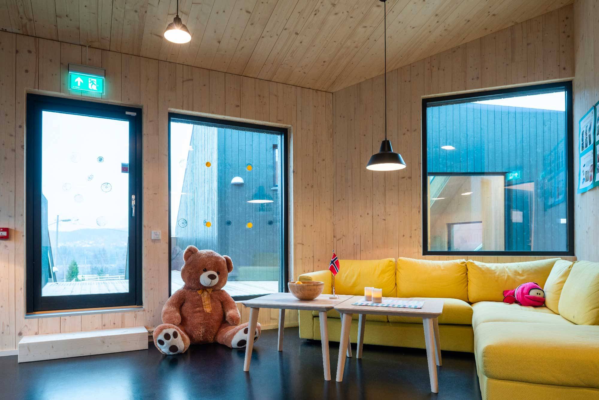 Nordtvet Farm Kindergarten is located in northeastern Oslo and interacts with a farm that is open to the public. The farm has a horseback-riding field and a farmyard with animals.