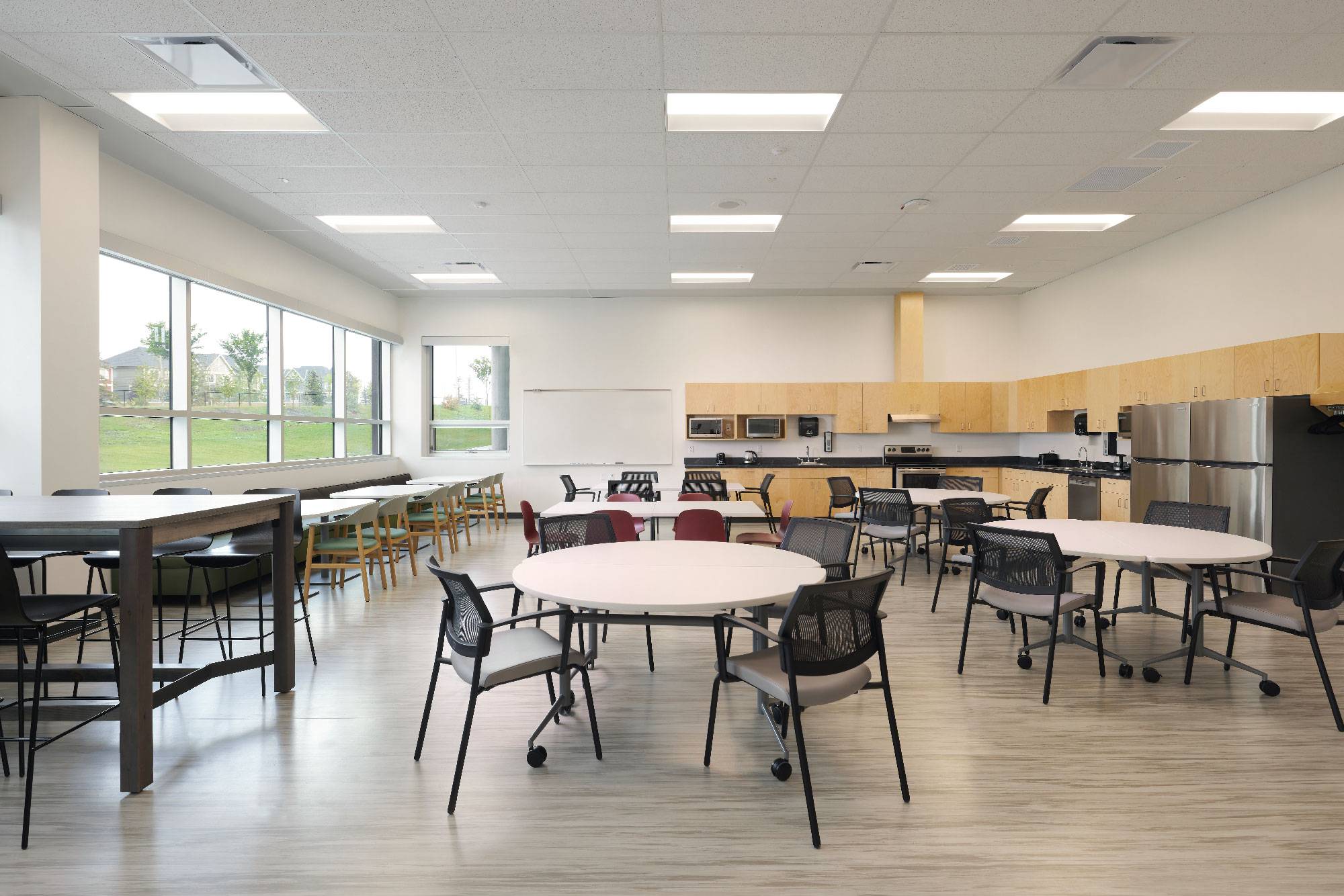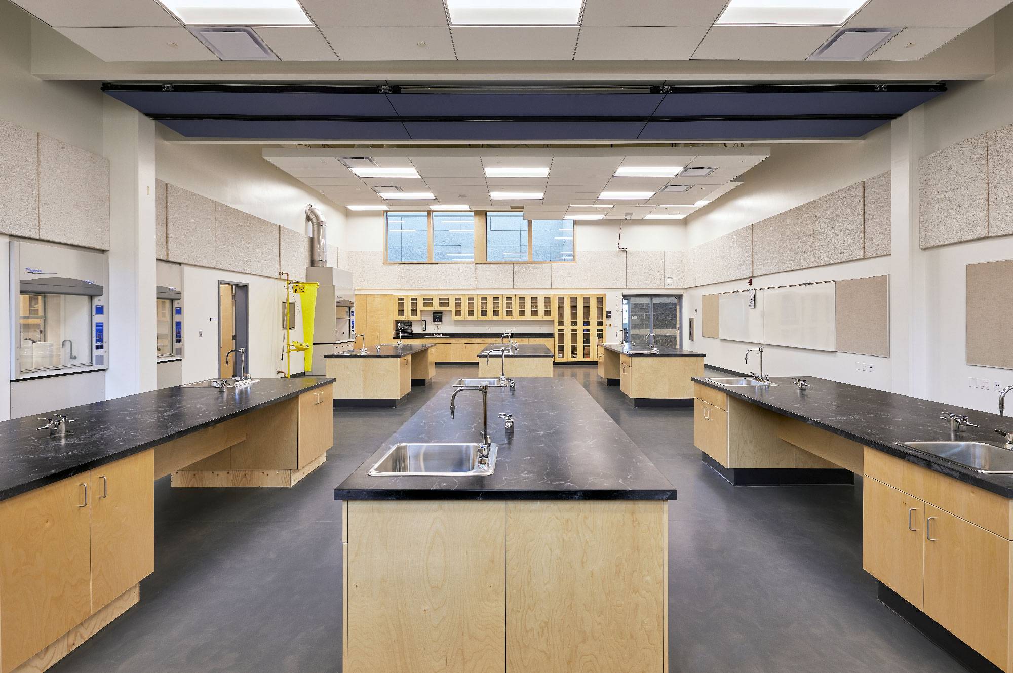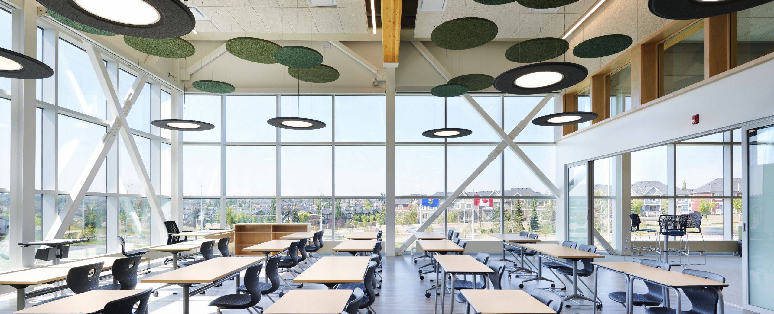 The school is designed with the educational philosophy of Learning Communities, 4 classrooms forming a POD, arranged around a centrally located shared multipurpose lab area on the main floor and science labs on the second floor. The design allows for maximum flexibility through operable and moveable walls yet keeping a high level of acoustic performance. The school opened its doors in September 2023 and features a theatre, automotive shops, culinary arts classrooms and several large gathering spaces for students.