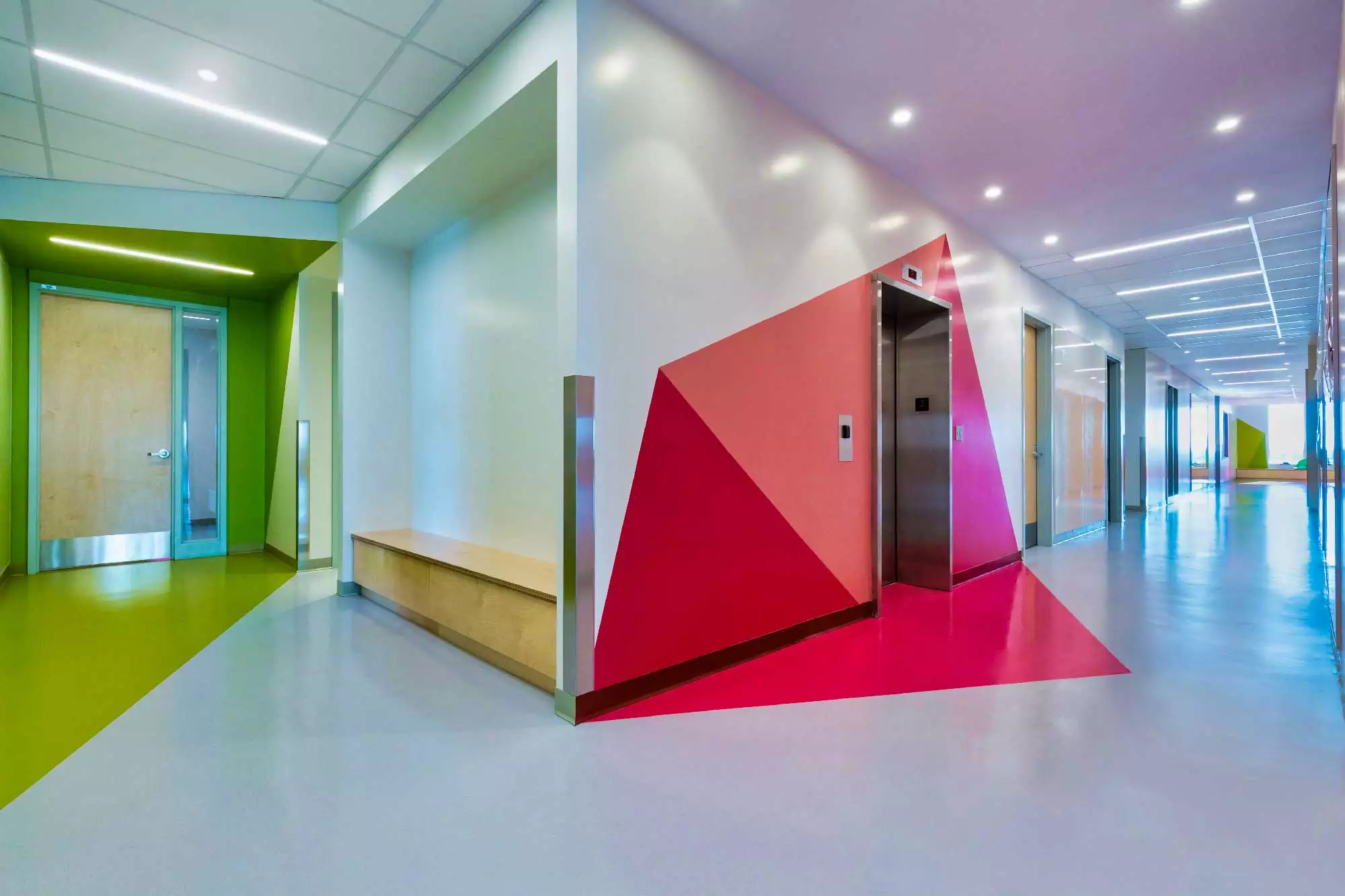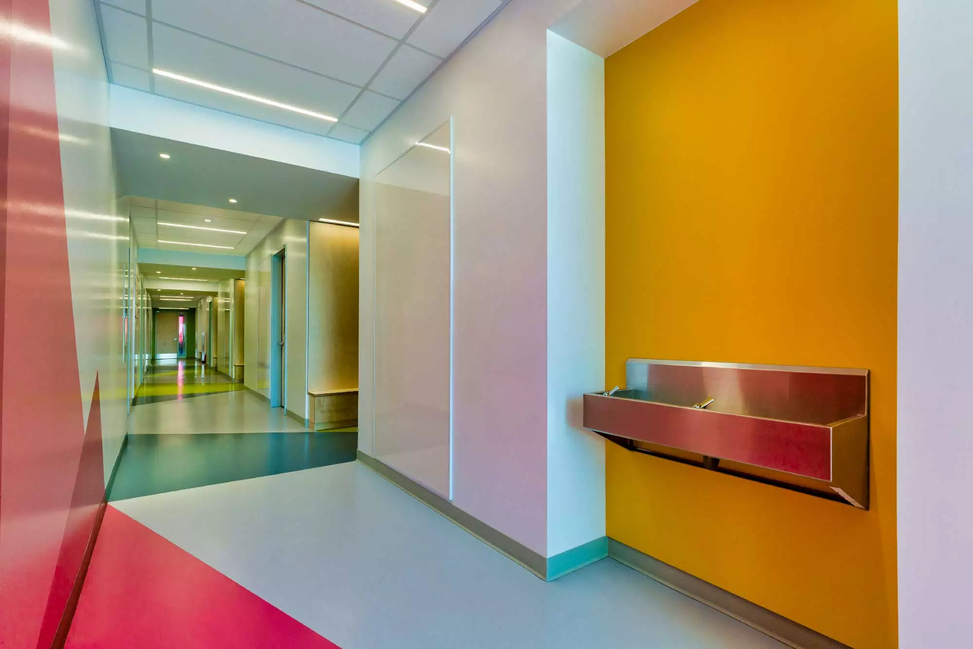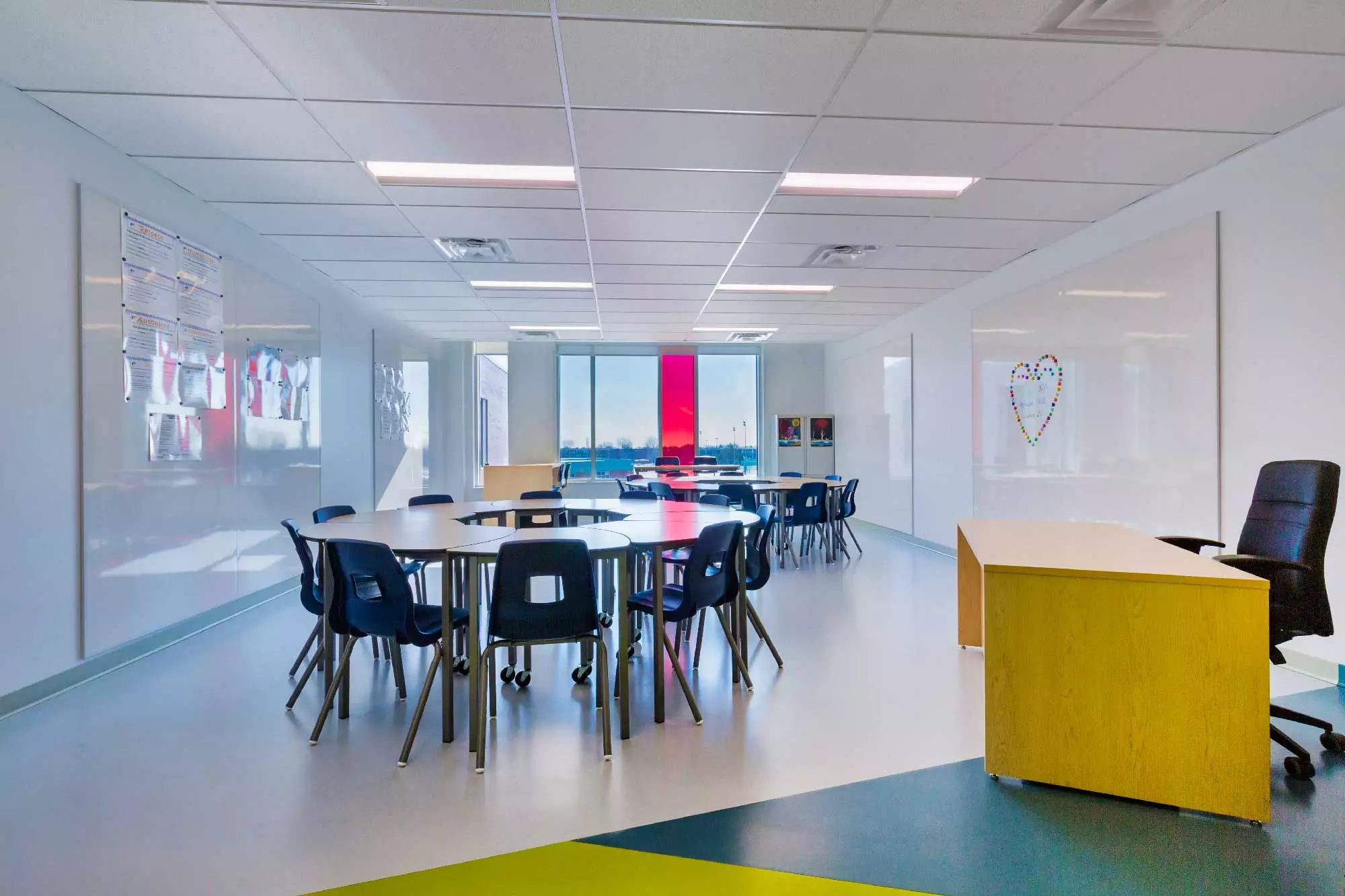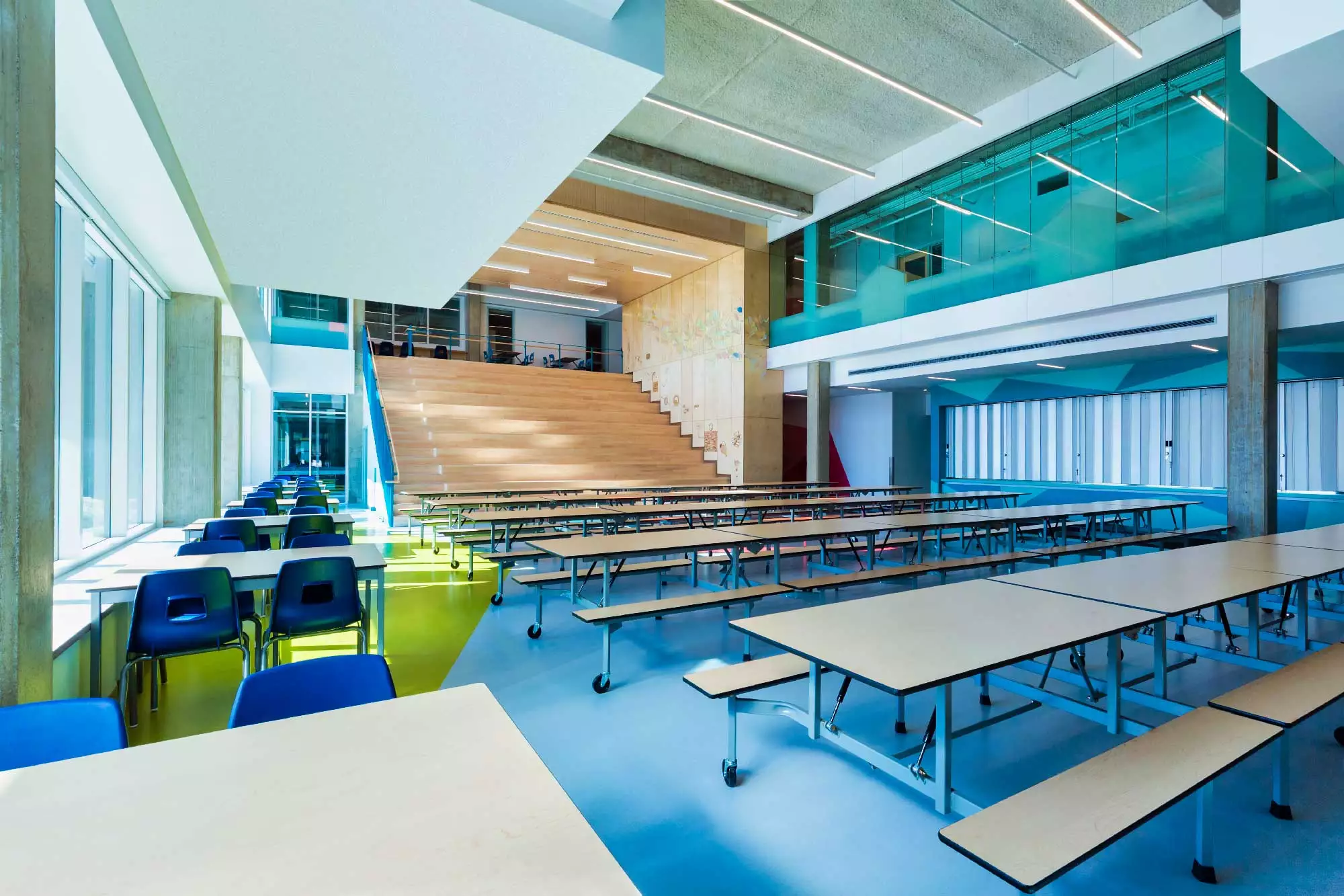 The New Innovative school in Greenfield Park, Quebec is a modern facility that combines two existing schools, to gather all grades from K-12 under one roof. Color is a key factor to the whole project and the architects made the best possible use of the variety of colors of the Artigo collection: the school features 11 different shades of our floorings, for a total surface of more than 4000 sqm, combining Kayar, Nd/Uni and Grain creating an inspiring, vibrant and modern atmosphere.