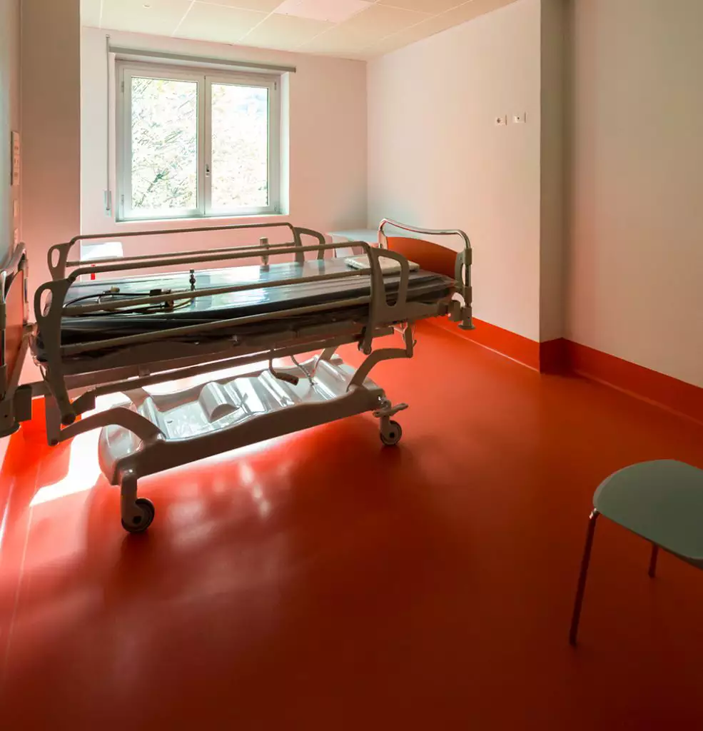This time our newest rubber flooring, Dharma, was introduced into the complex, in a multitude of colours (D18 – D20 -D05 – D06 – D02 – D17 – D19) for a total surface of 1100 sqm, the whole surface of the ward.