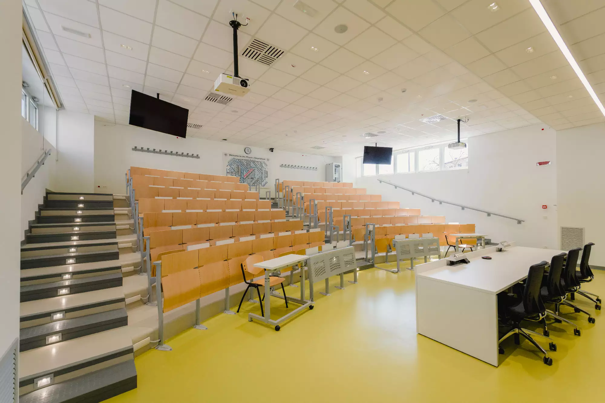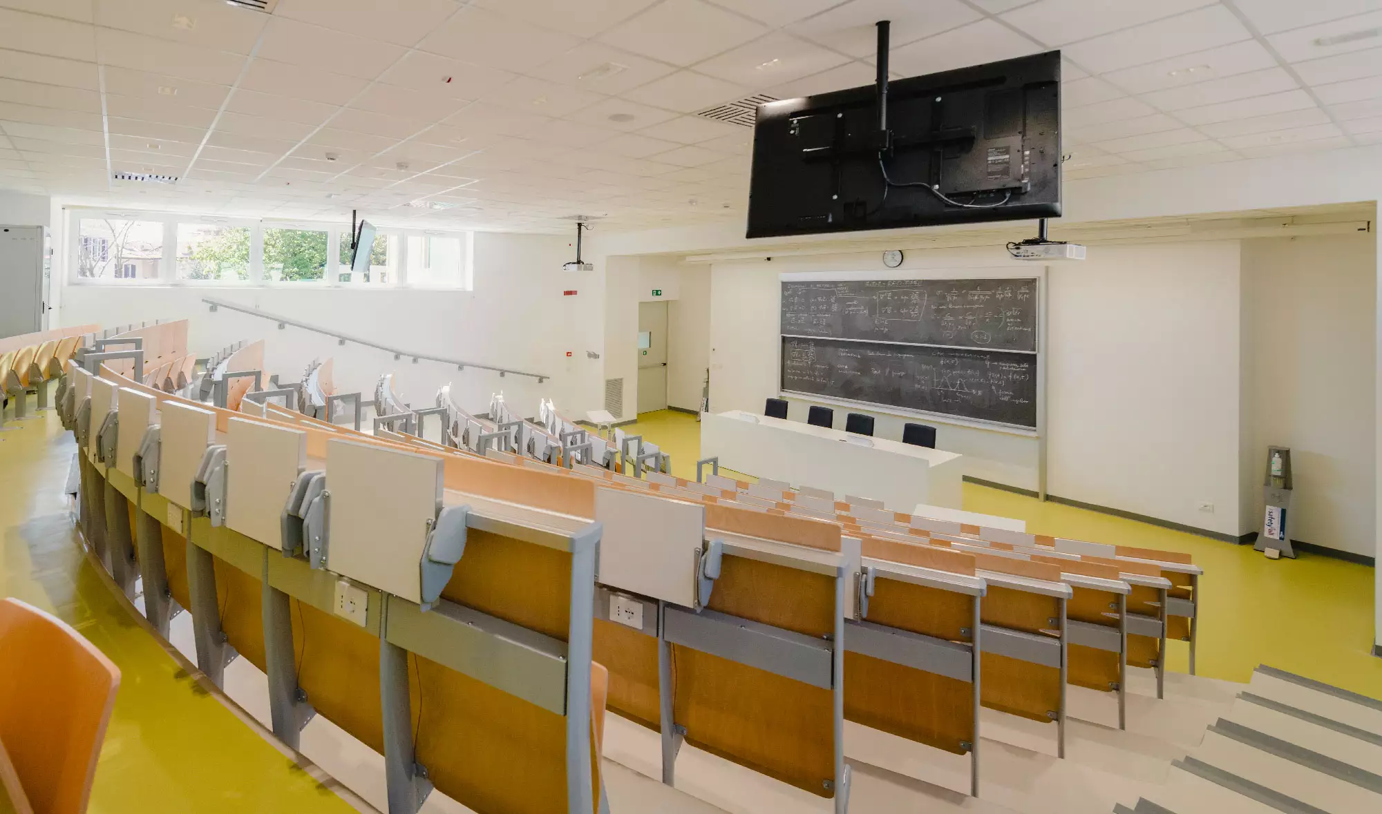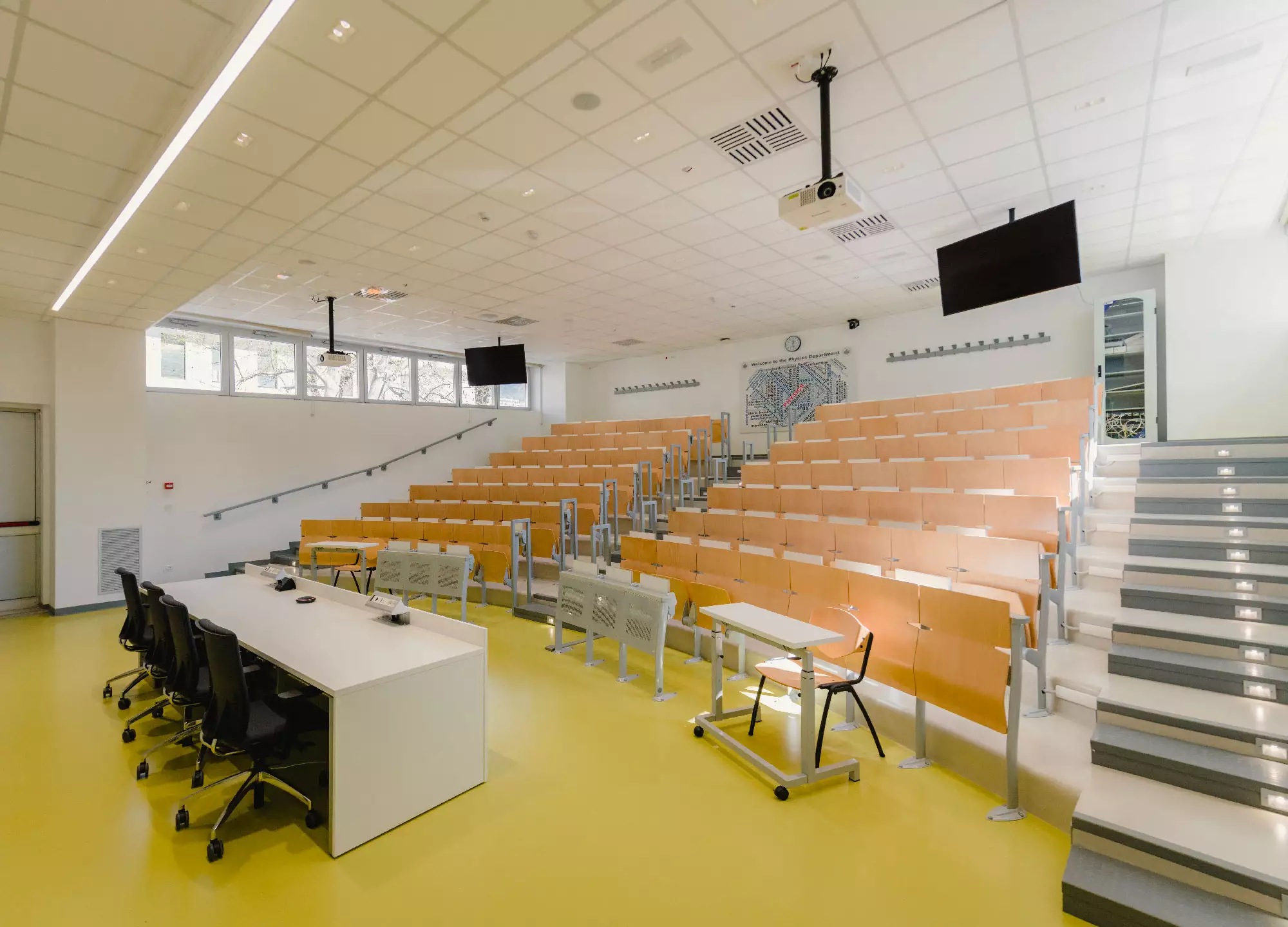On October 1st, 2009, the three university Departments, already having close links both as regards research and teaching activities, joined together to form the new Department of Physics. The refurbishment of the Aula Magna was completed in 2020. With a surface of 150 sqm, our own Uni rubber flooring is used throughout the space, completed with stairs made with our Fullstep system.