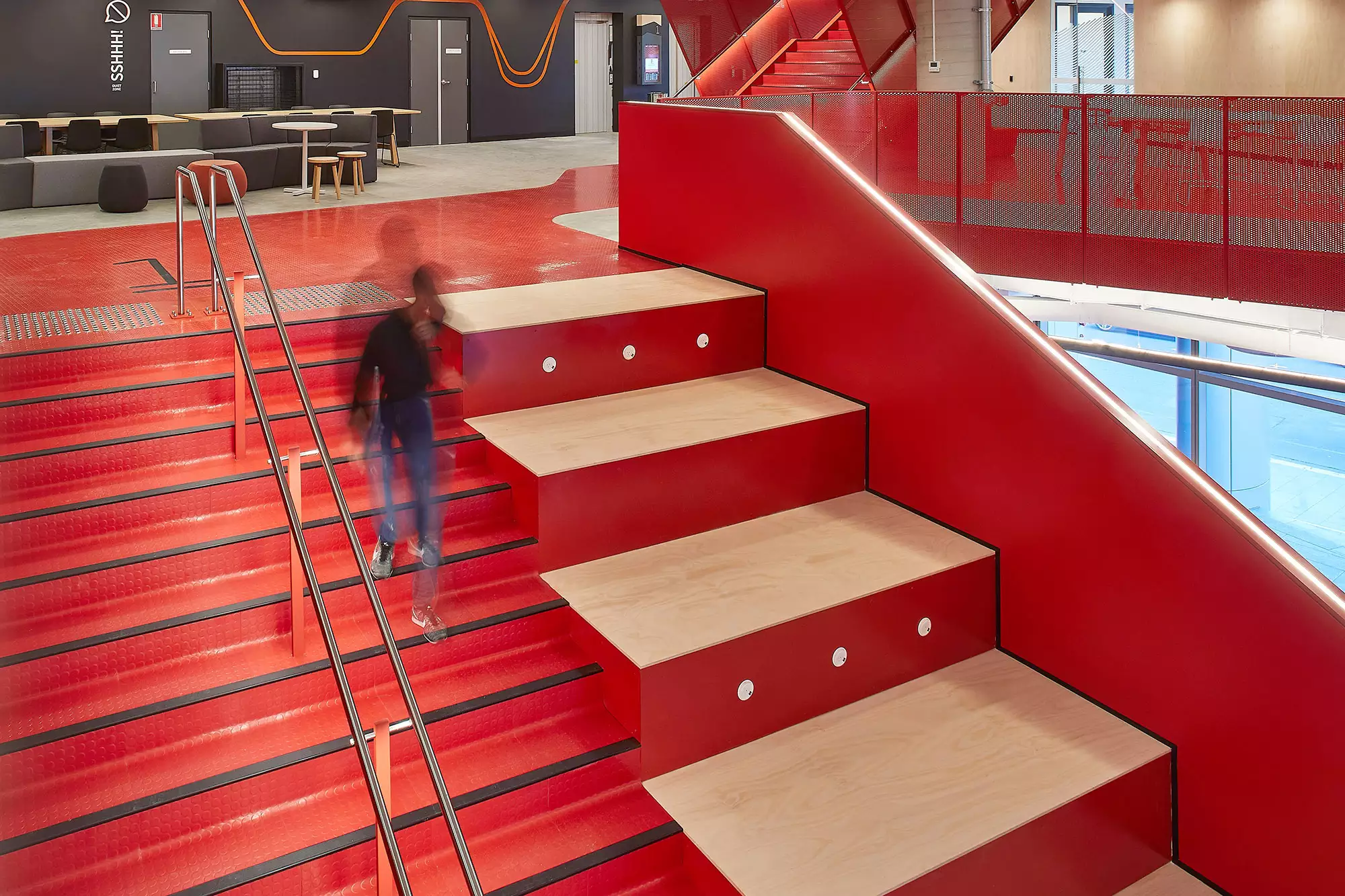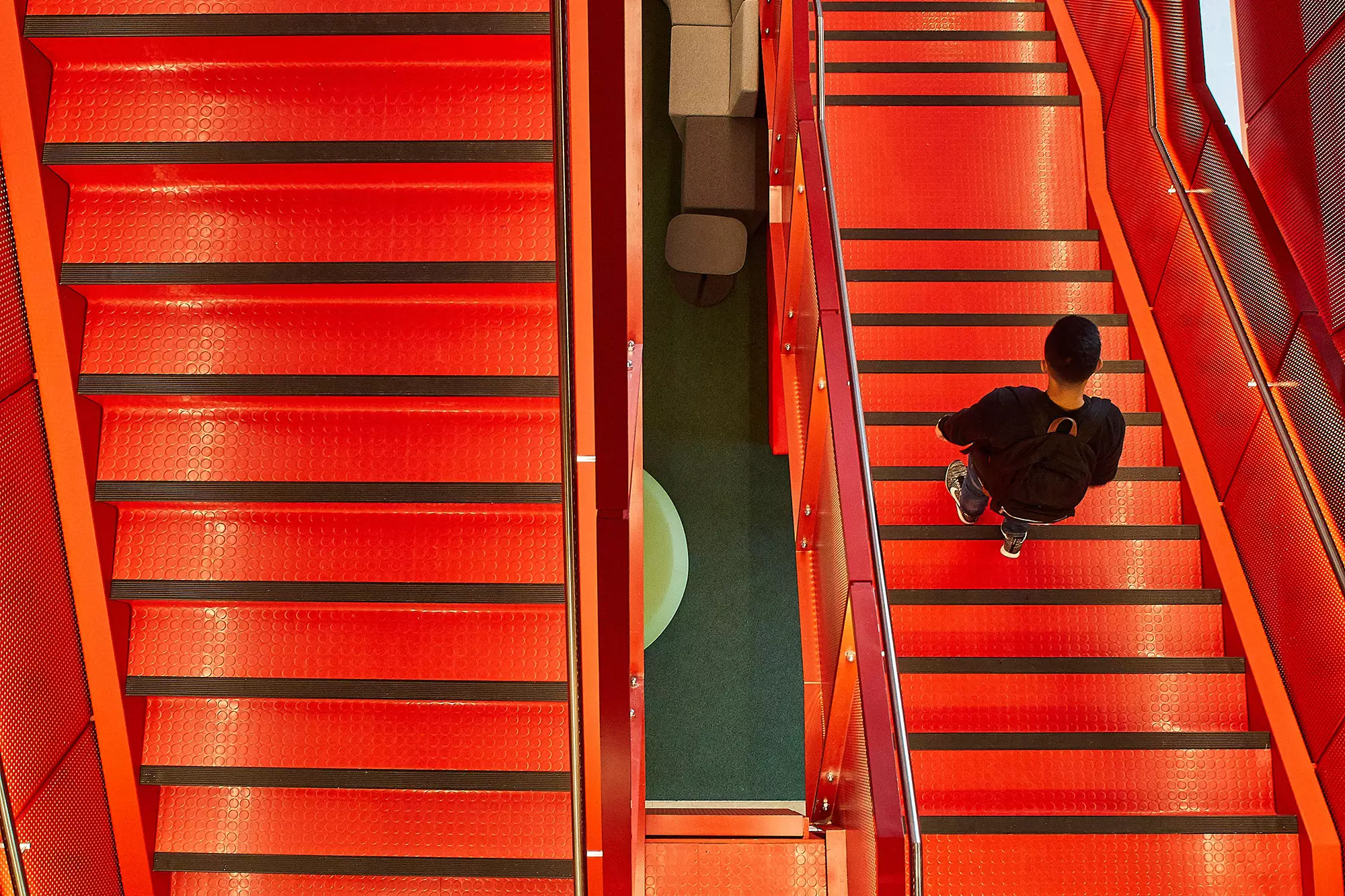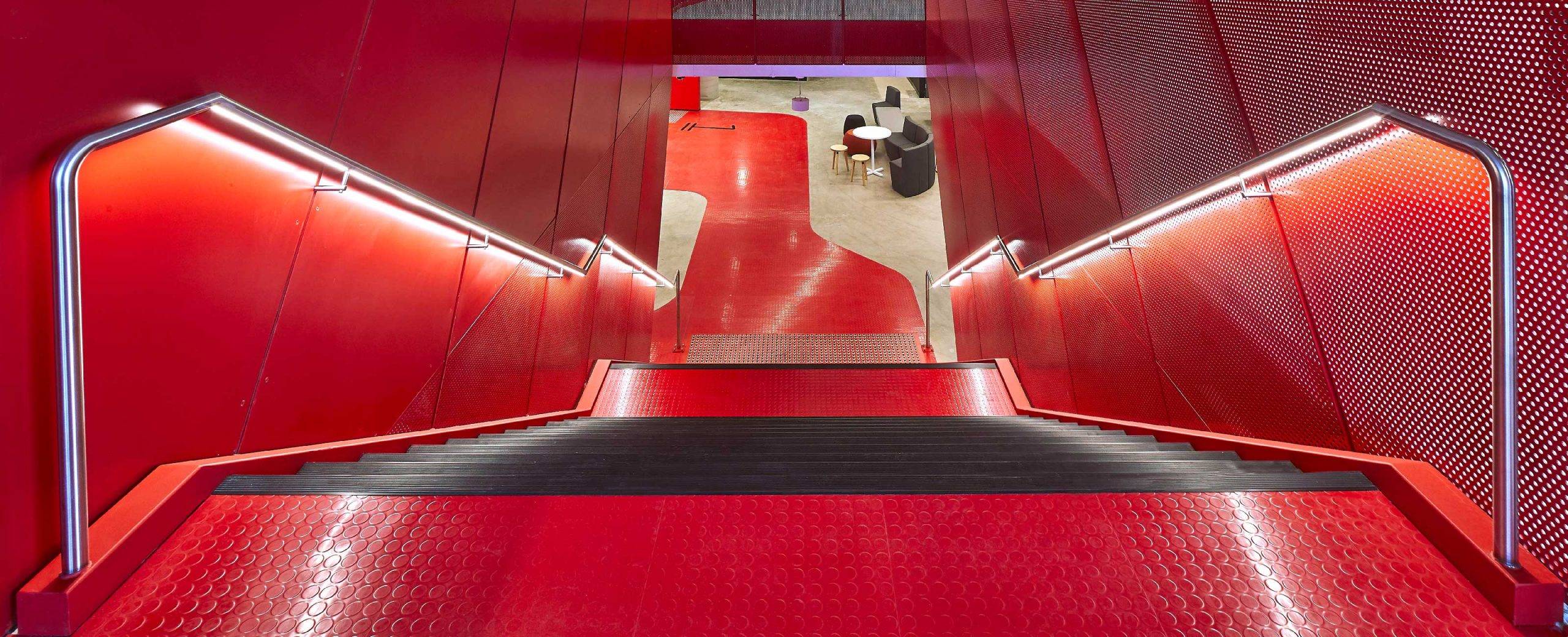 The stairs are a key feature – featuring our BS classic steps. Conceived by MPA architects as a means of “connecting space and time”, the stairs to all floors provide for a vertical campus.