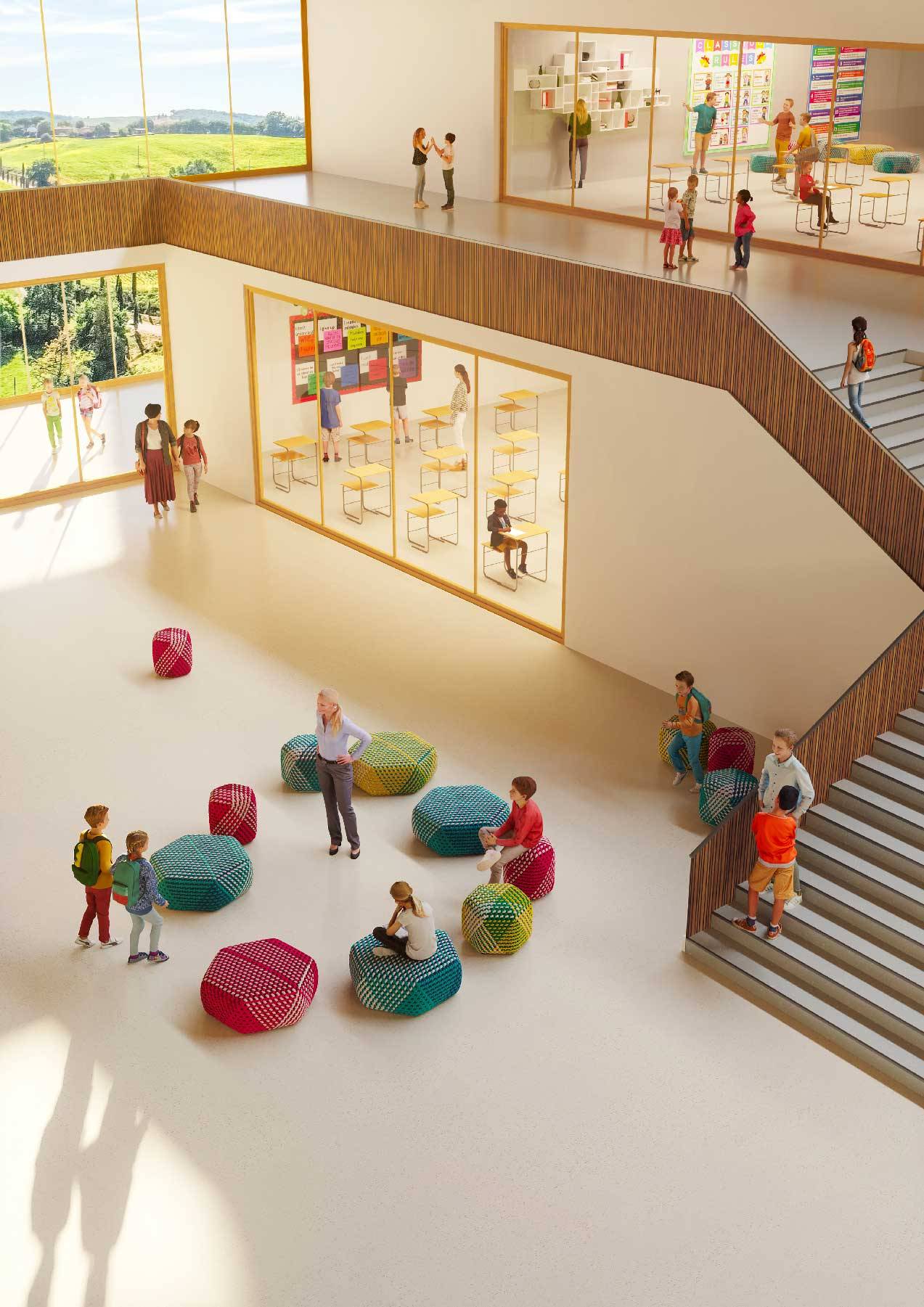 Thanks to its acoustic properties and ability to absorb footfall noise, Dharma helps improve indoor comfort, a particularly beneficial aspect in educational and healthcare settings.