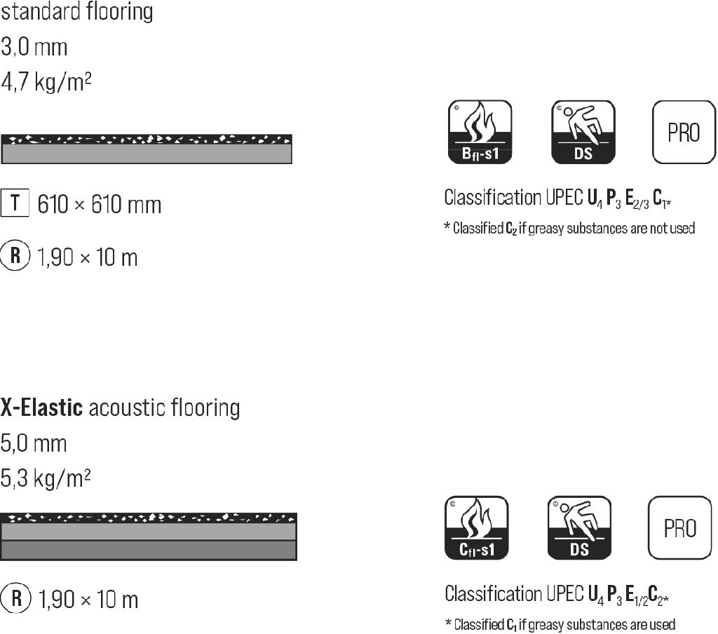 • Fire resistance: Bfl-s1 classification according to EN 13501-1 standard.