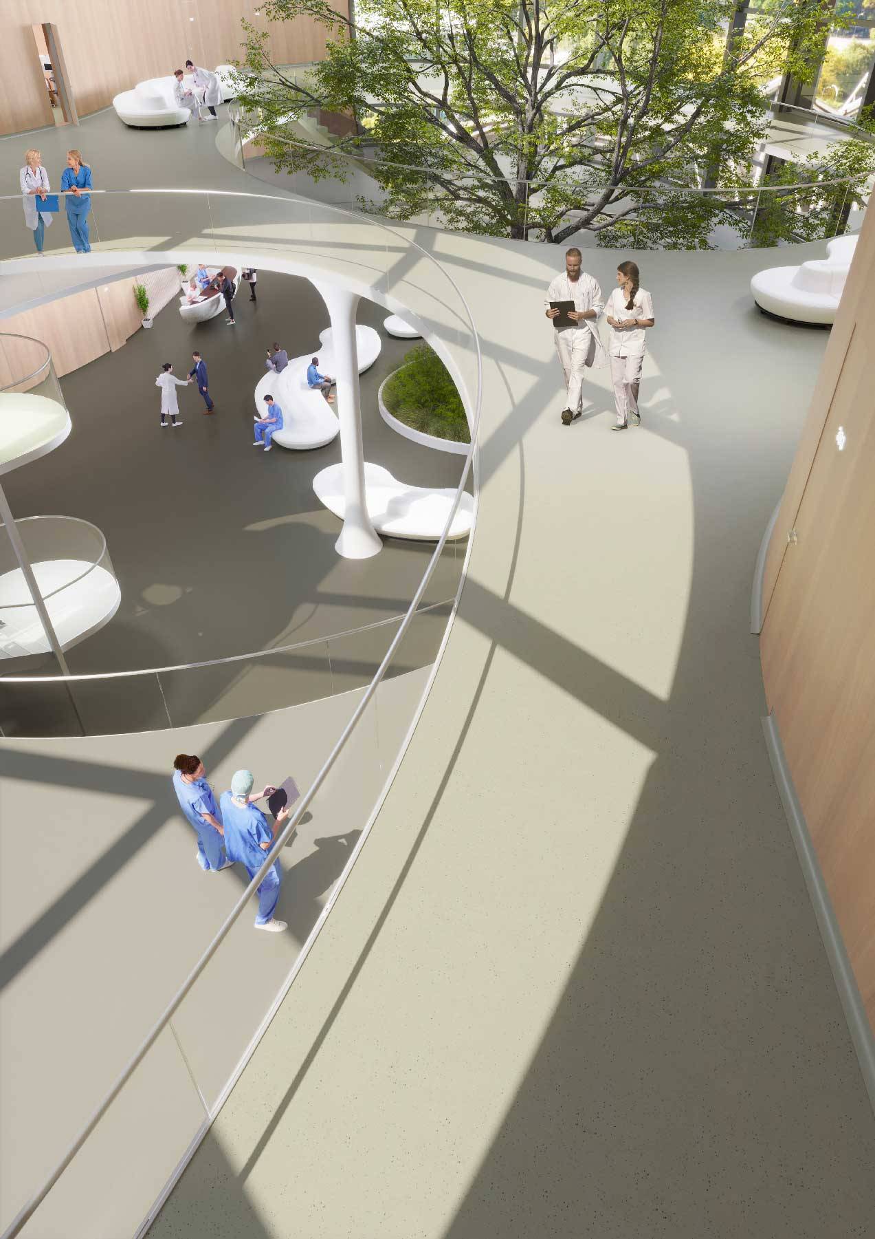 Thanks to its high wear resistance and ease of maintenance, Grain is a durable and reliable choice. The walking comfort and the acoustic performance of rubber also contribute to improved indoor wellbeing.