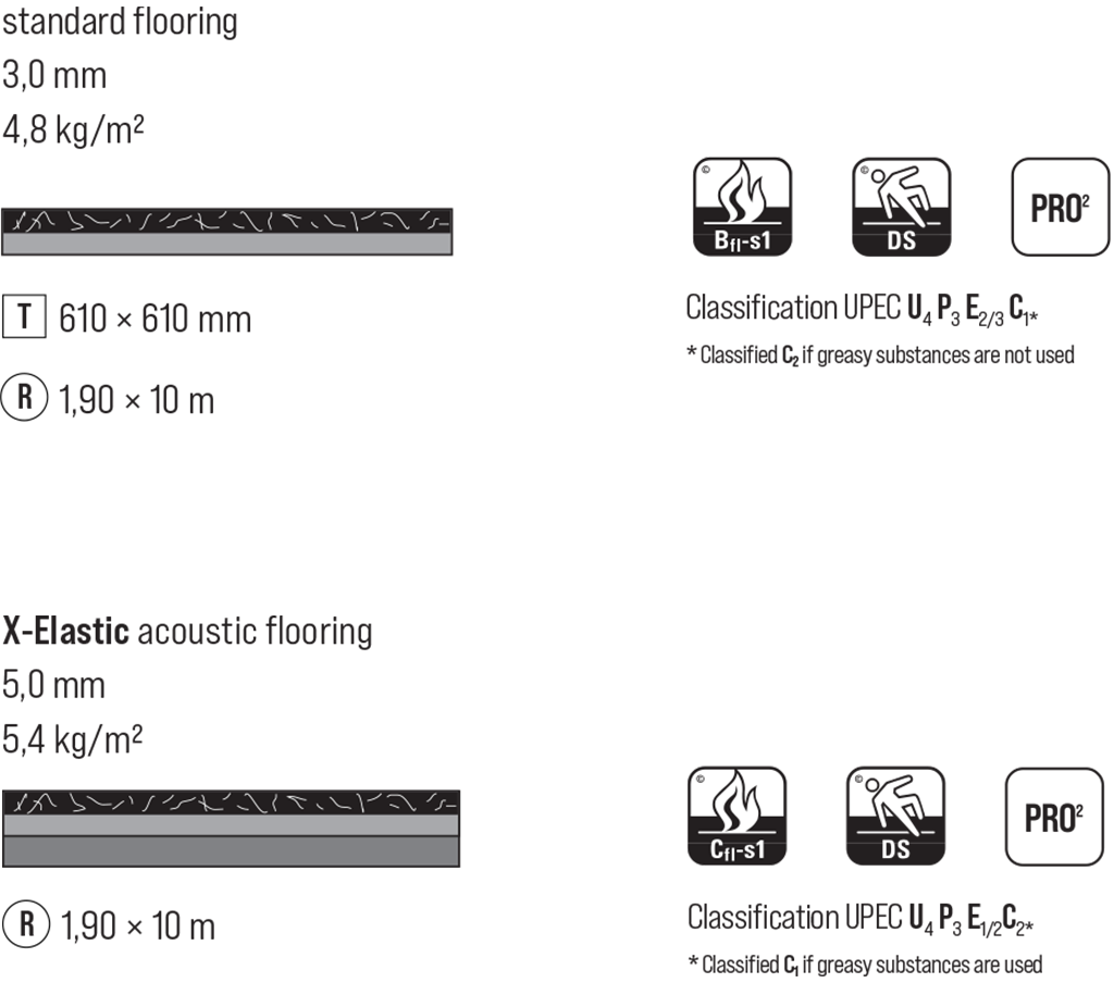 - Fire-retardant properties: Bfl-s1 classification according to EN 13501-1.
