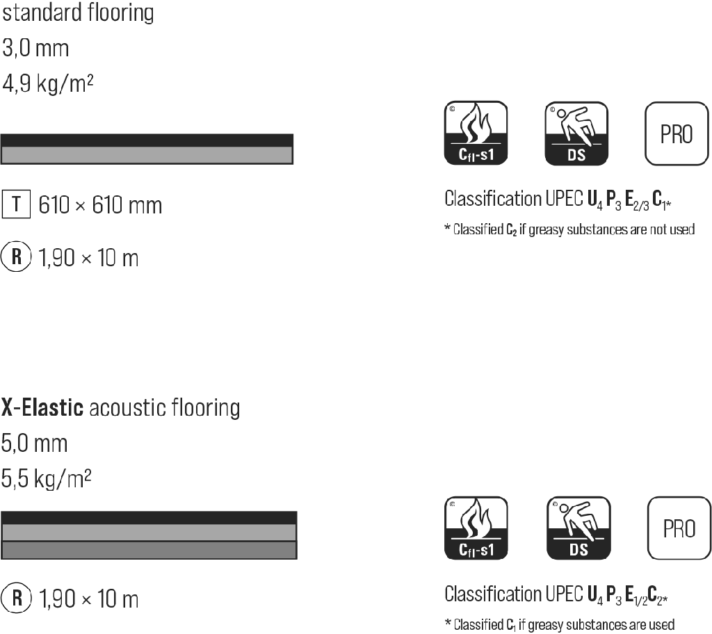 • Fire-retardant properties: Cfl-s1 classification according to EN 13501-1.